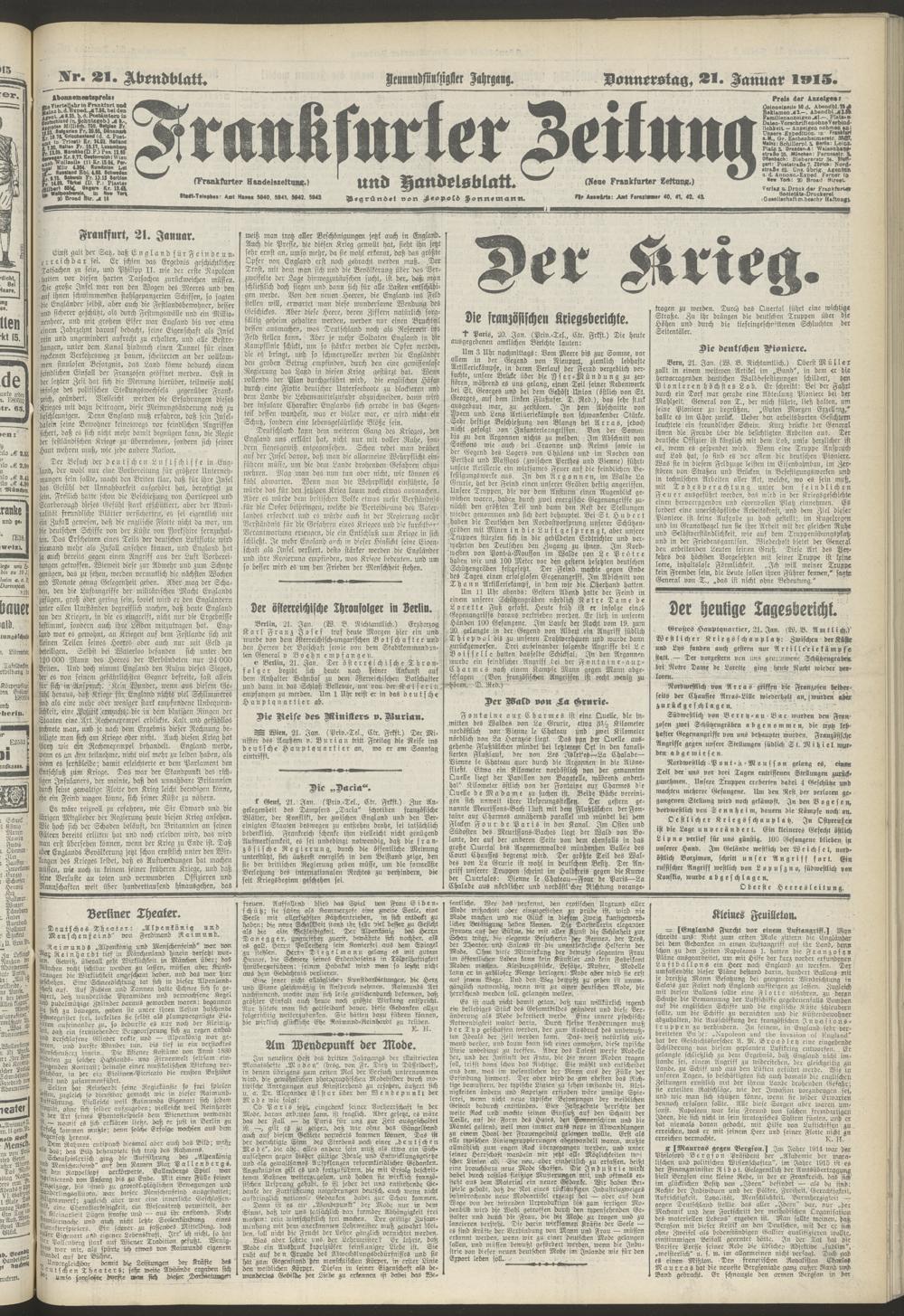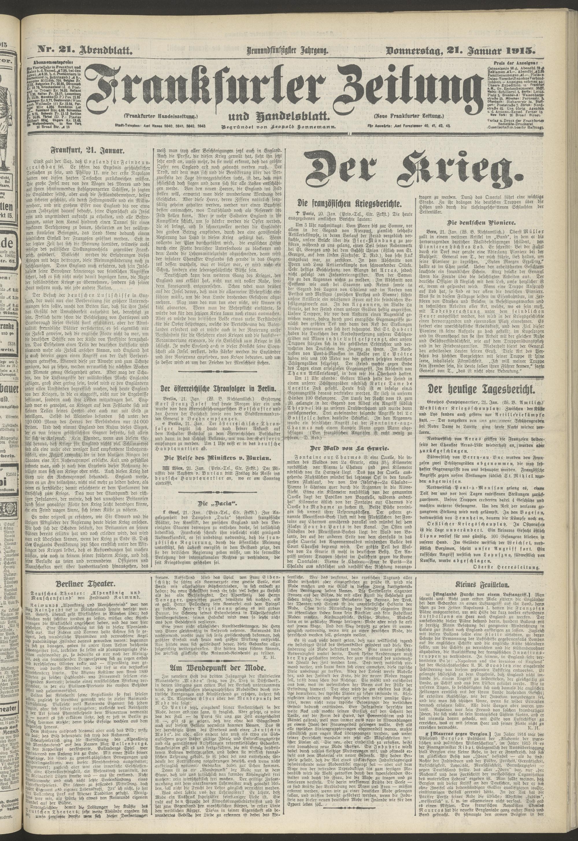 21.01.1915 = Nr. 21. Abendblatt