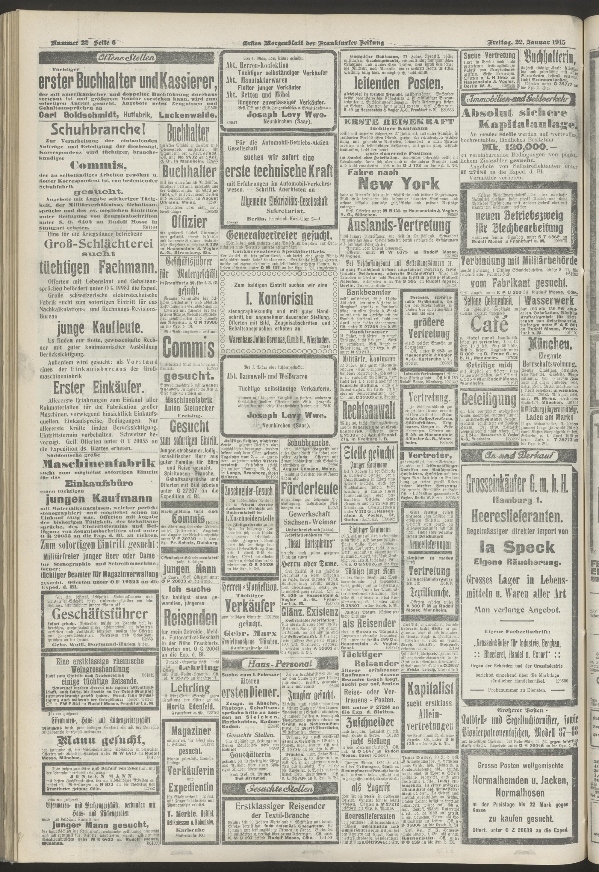22.01.1915 = Nr. 22. Erstes Morgenblatt