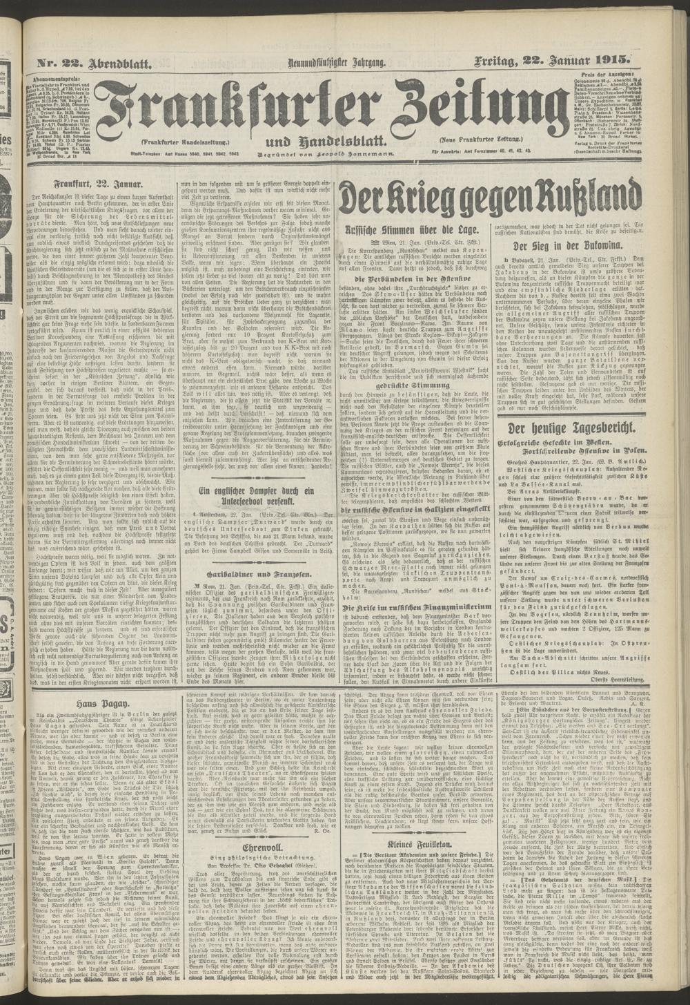 22.01.1915 = Nr. 22. Abendblatt