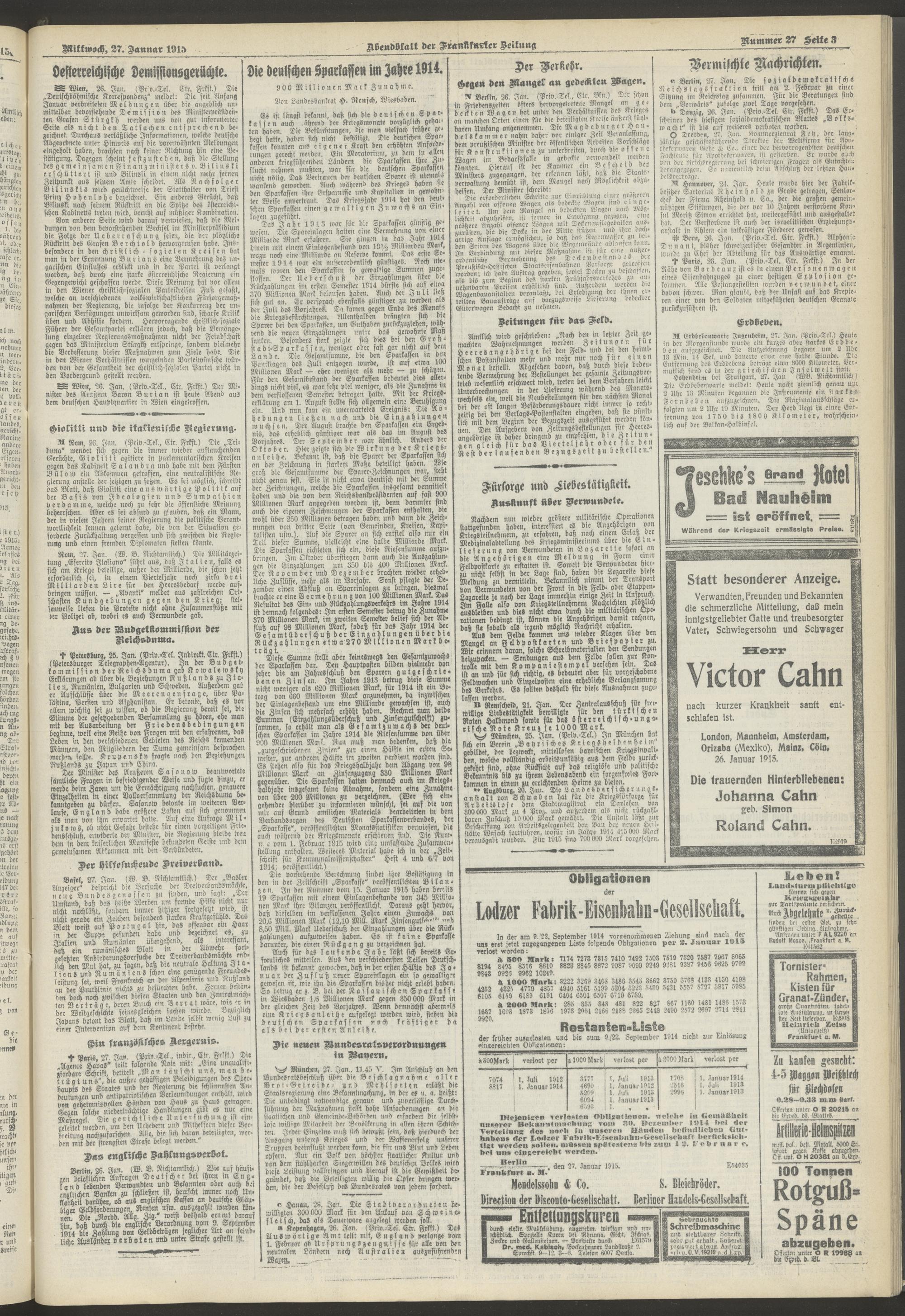 27.01.1915 = Nr. 27. Abendblatt