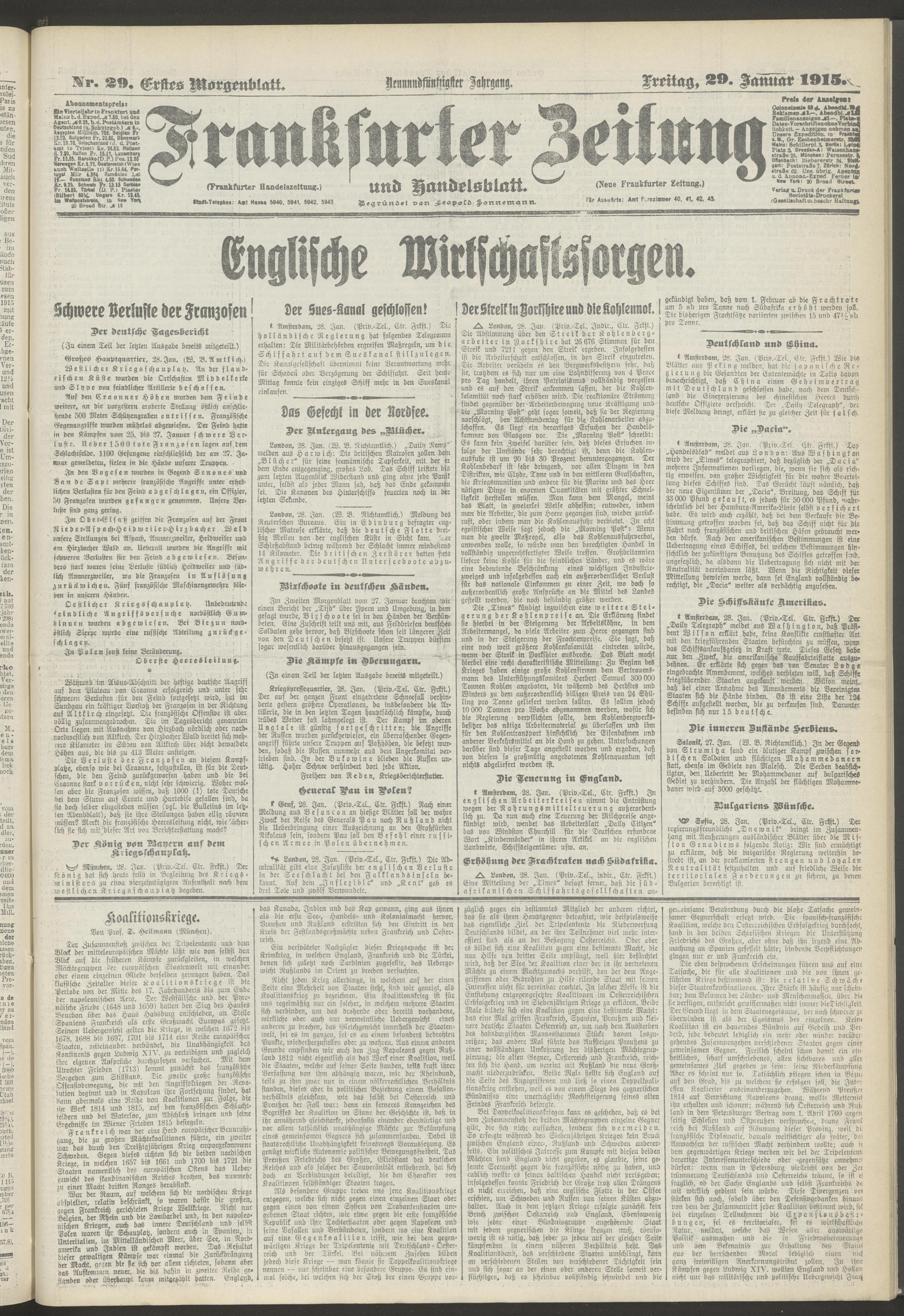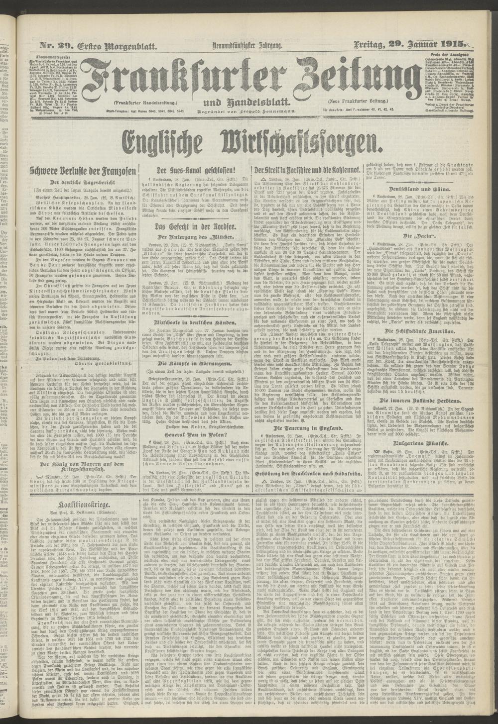 29.01.1915 = Nr. 29. Erstes Morgenblatt