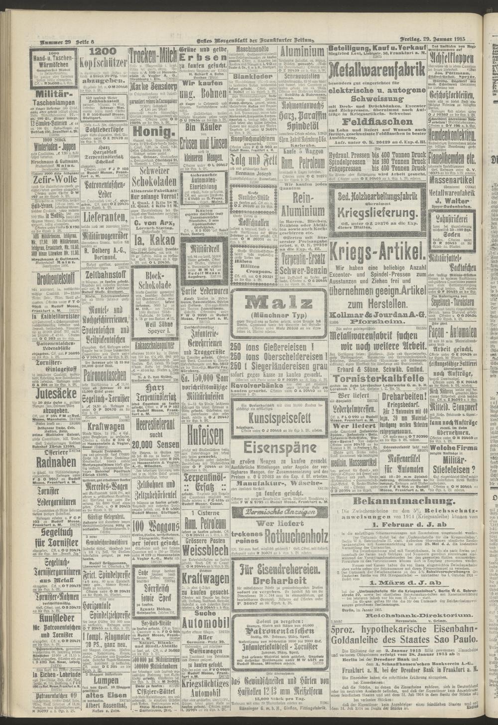 29.01.1915 = Nr. 29. Erstes Morgenblatt