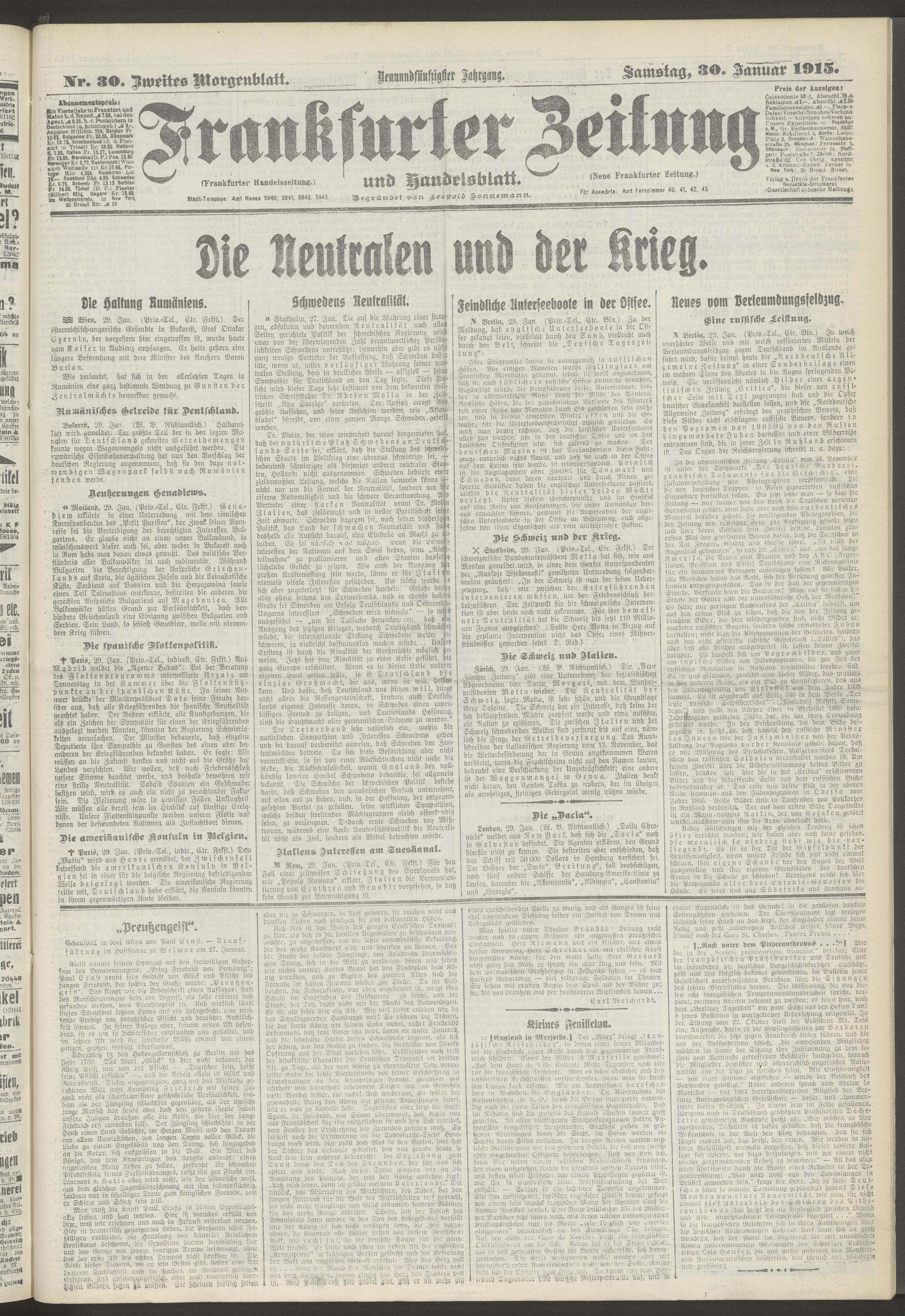 30.01.1915 = Nr. 30. Zweites Morgenblatt