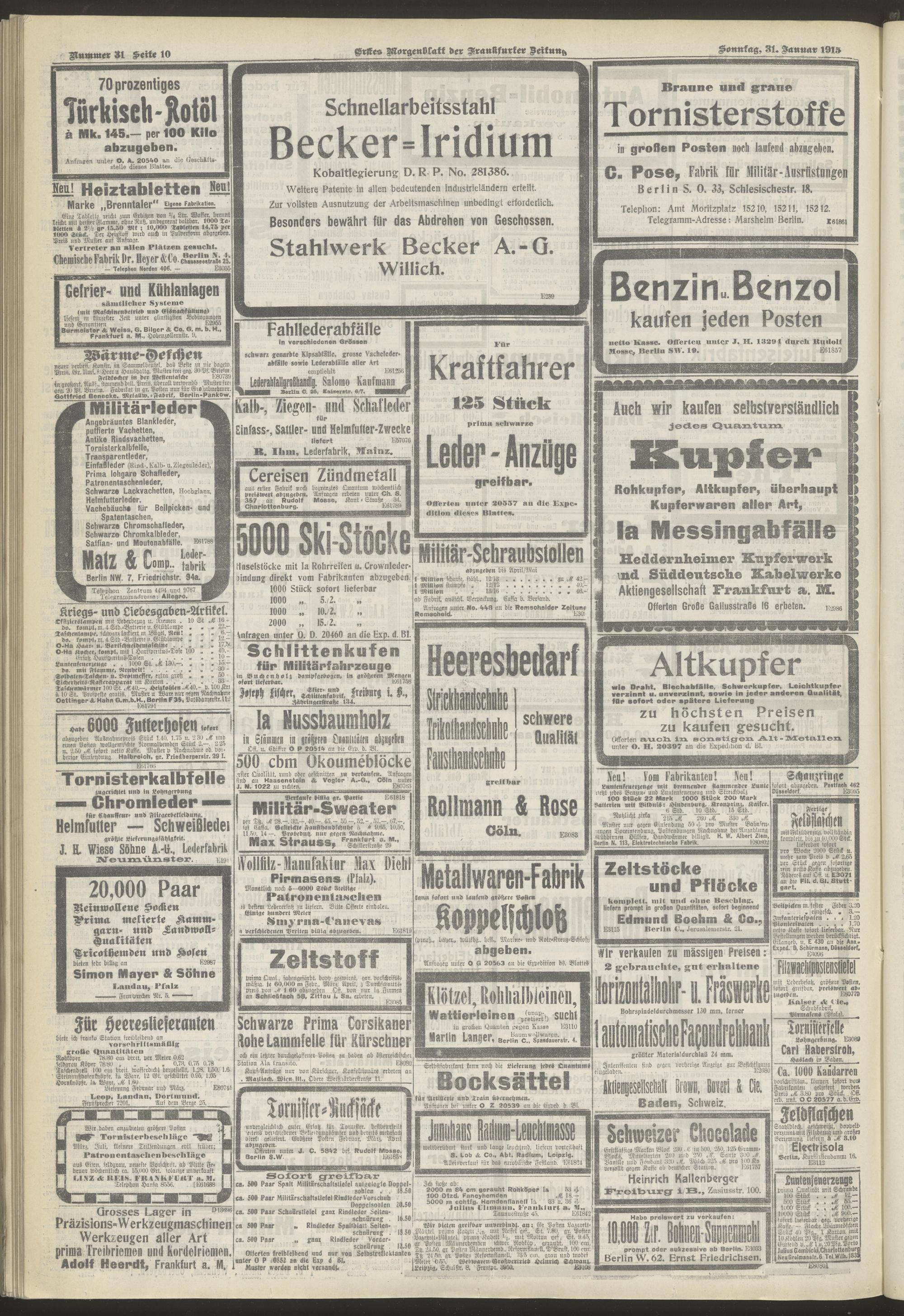31.01.1915 = Nr. 31. Erstes Morgenblatt