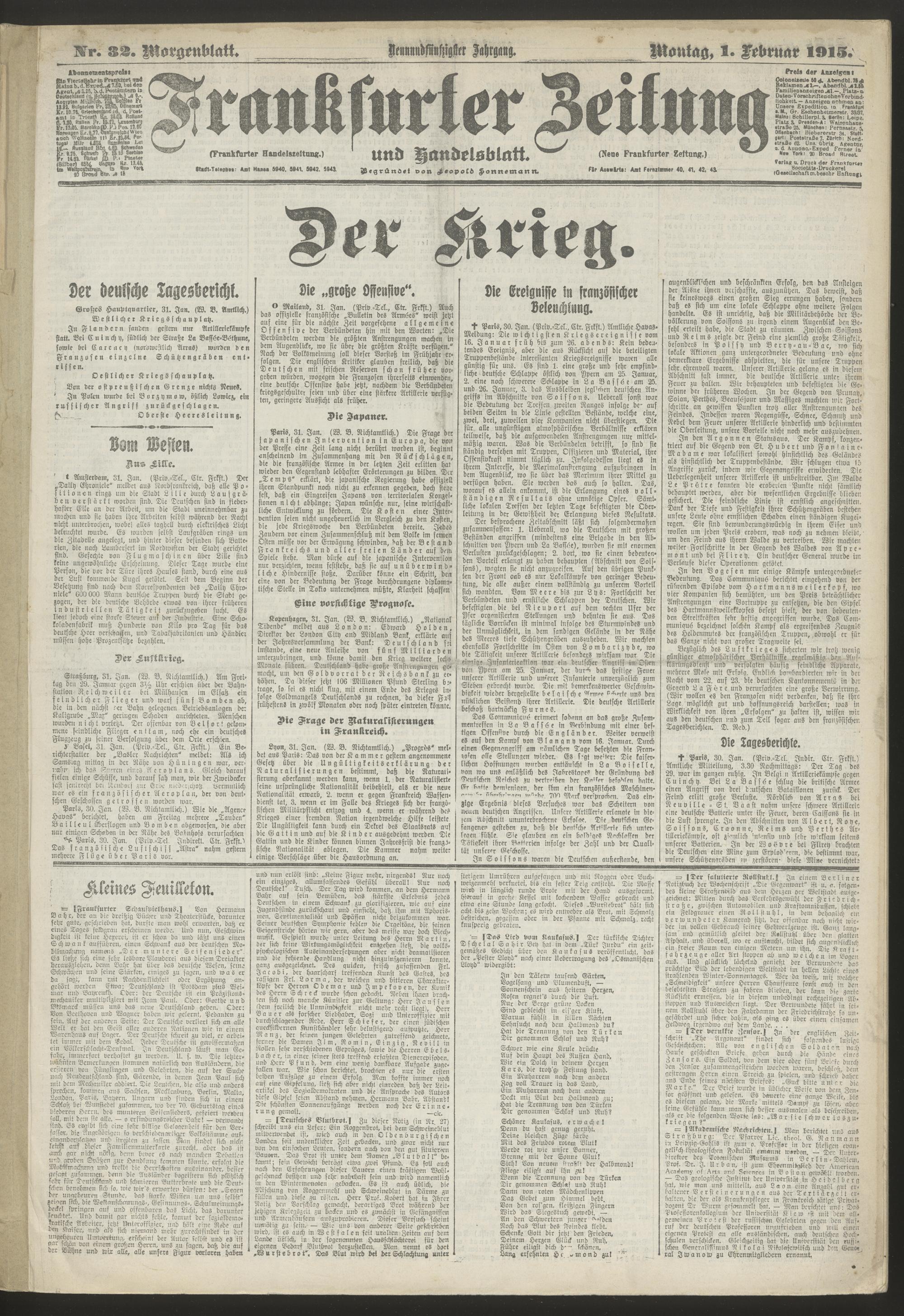 01.02.1915 = Nr. 32. Morgenblatt