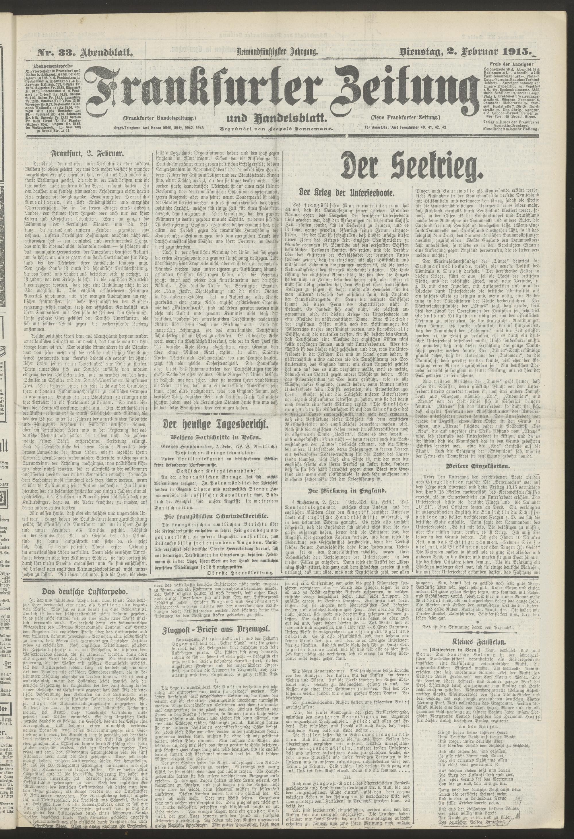 02.02.1915 = Nr. 33. Abendblatt