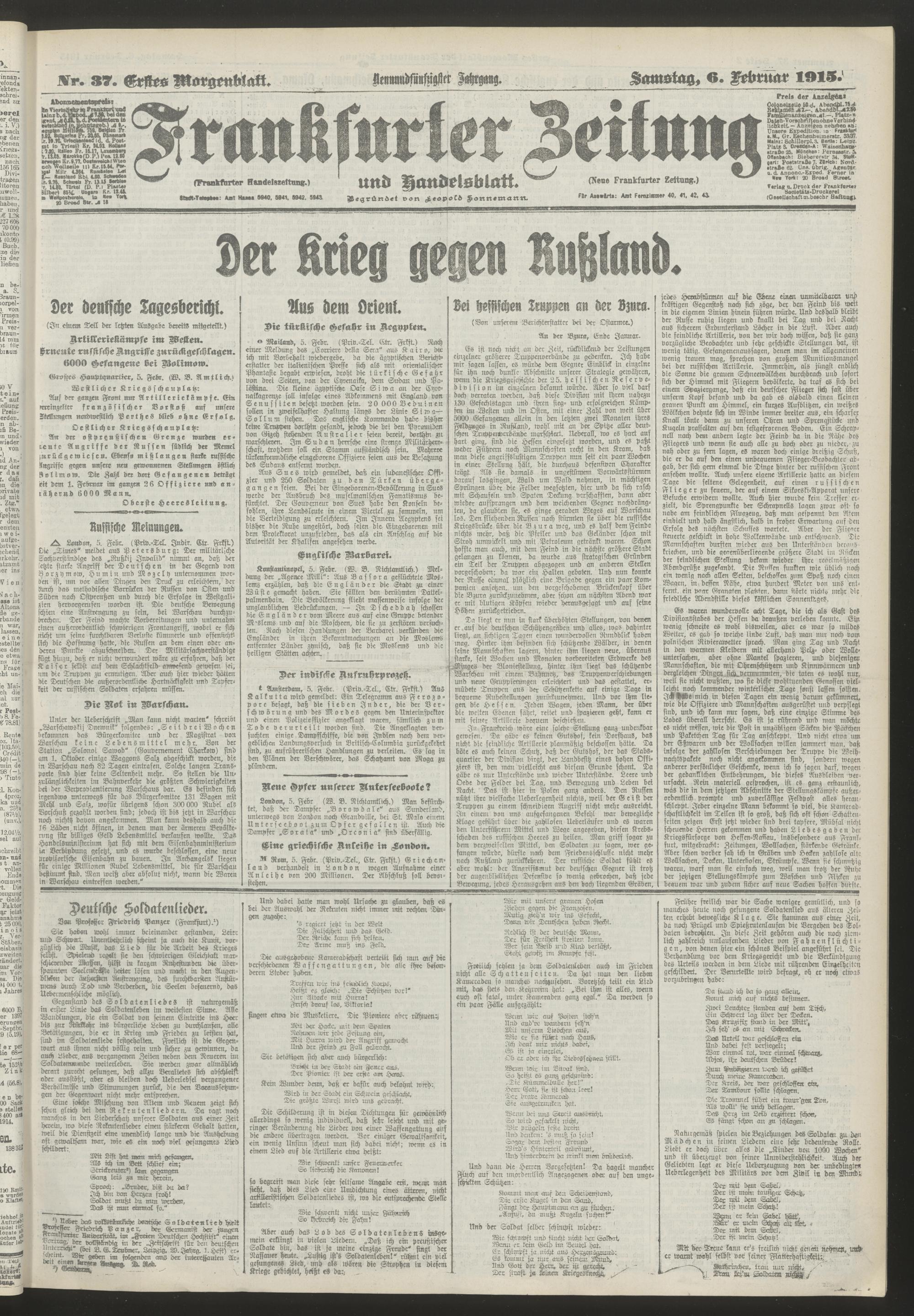 06.02.1915 = Nr. 37. Erstes Morgenblatt
