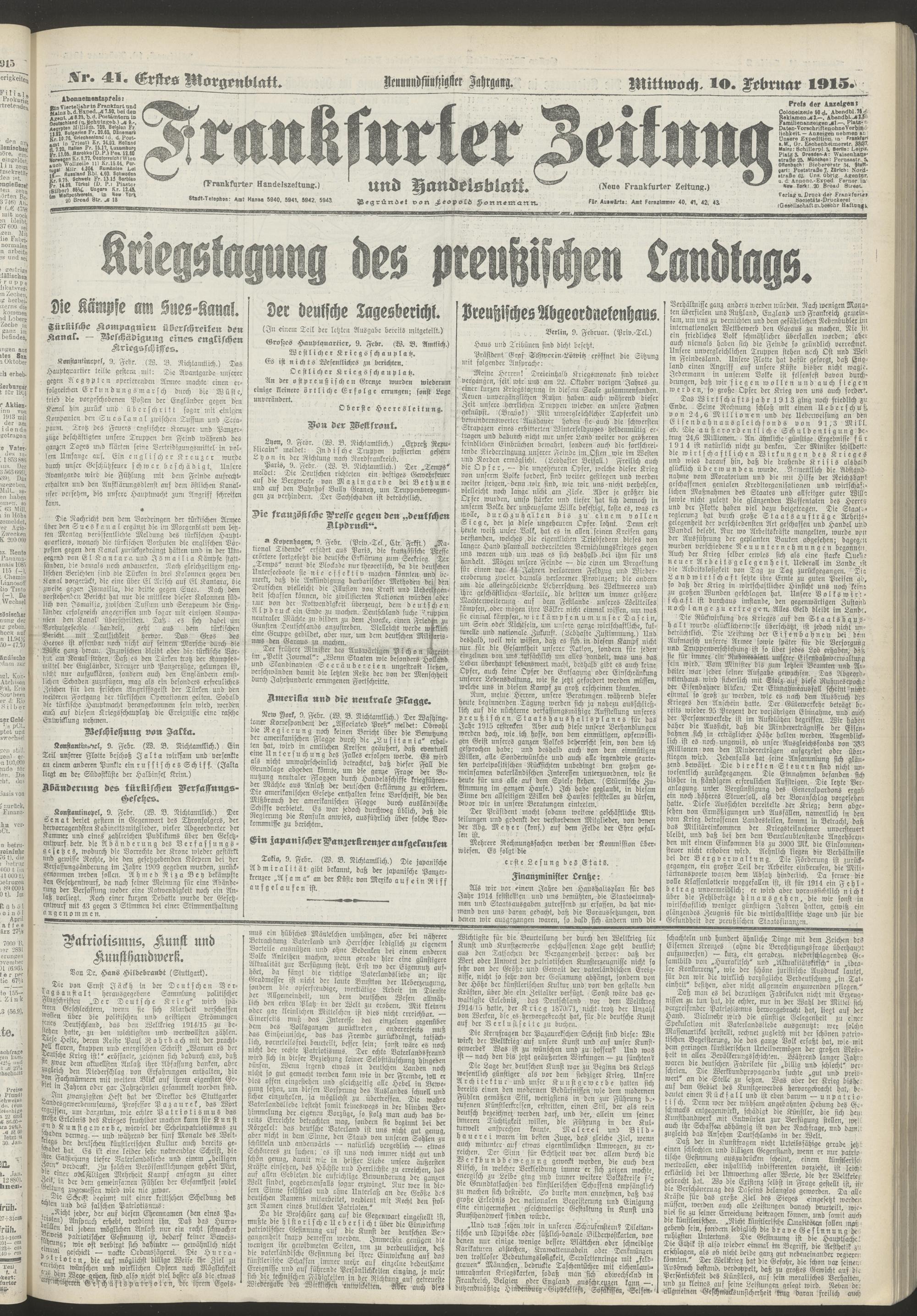 10.02.1915 = Nr. 41. Erstes Morgenblatt