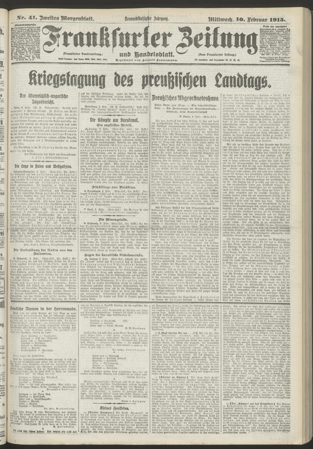 10.02.1915 = Nr. 41. Zweites Morgenblatt