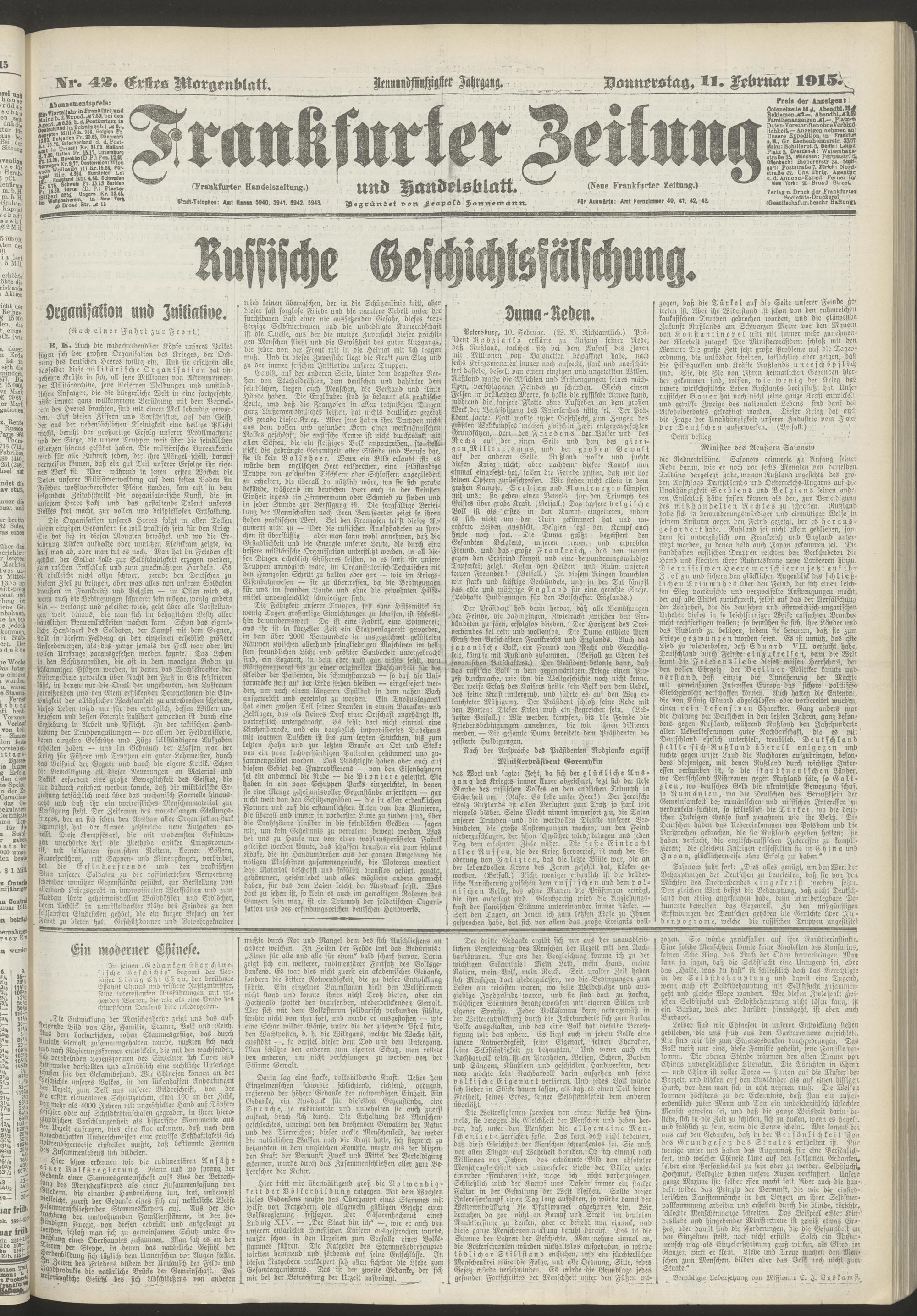 11.02.1915 = Nr. 42. Erstes Morgenblatt