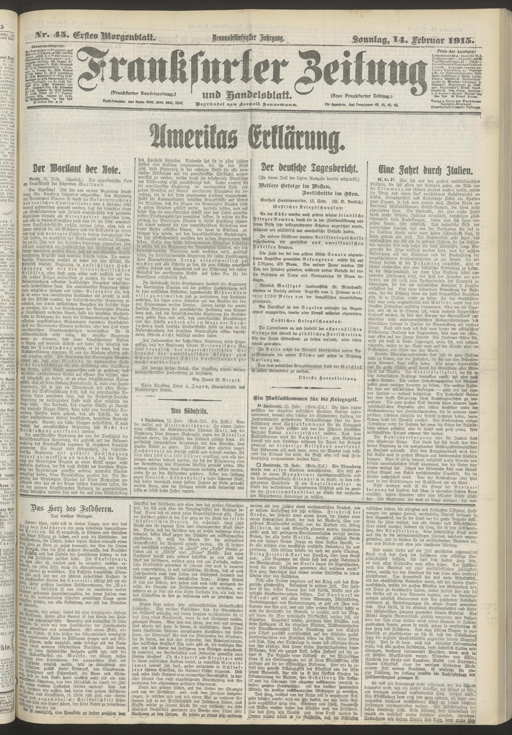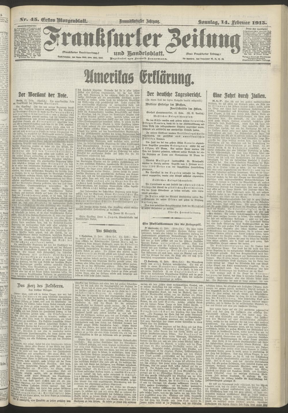 14.02.1915 = Nr. 45. Erstes Morgenblatt