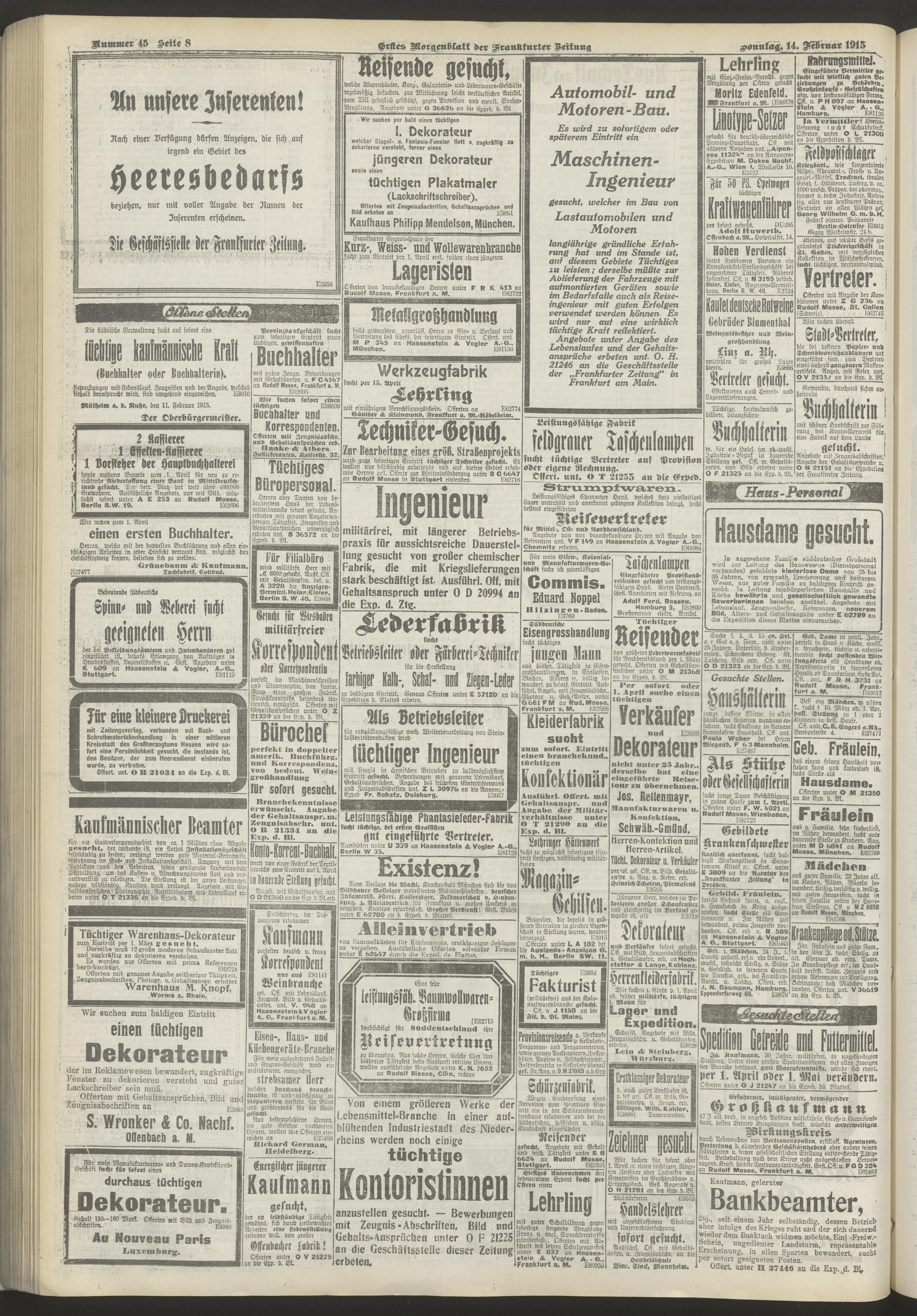 14.02.1915 = Nr. 45. Erstes Morgenblatt