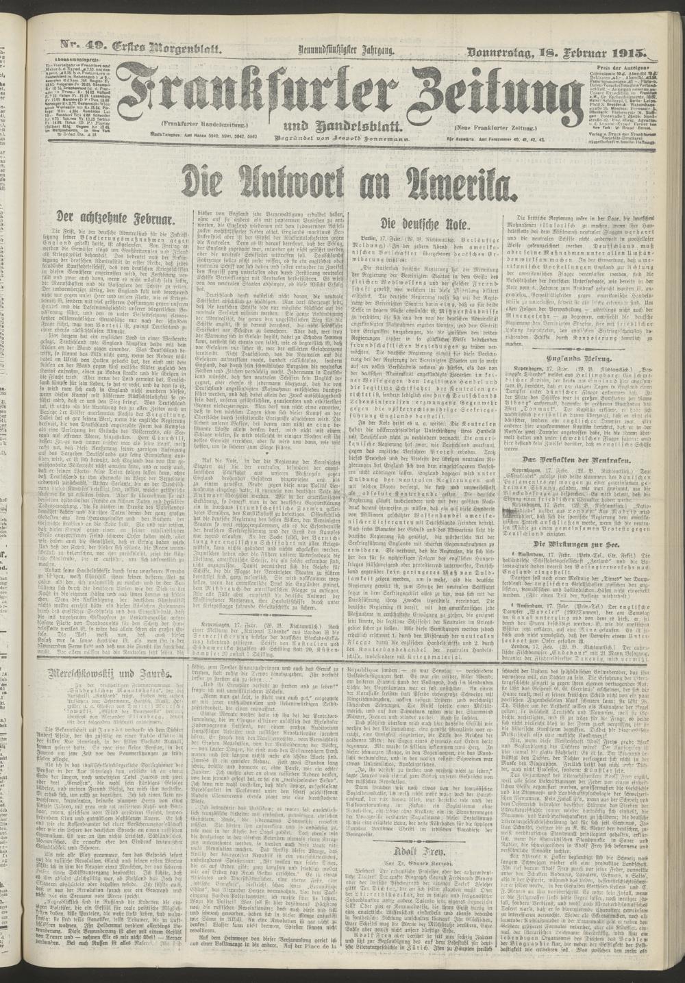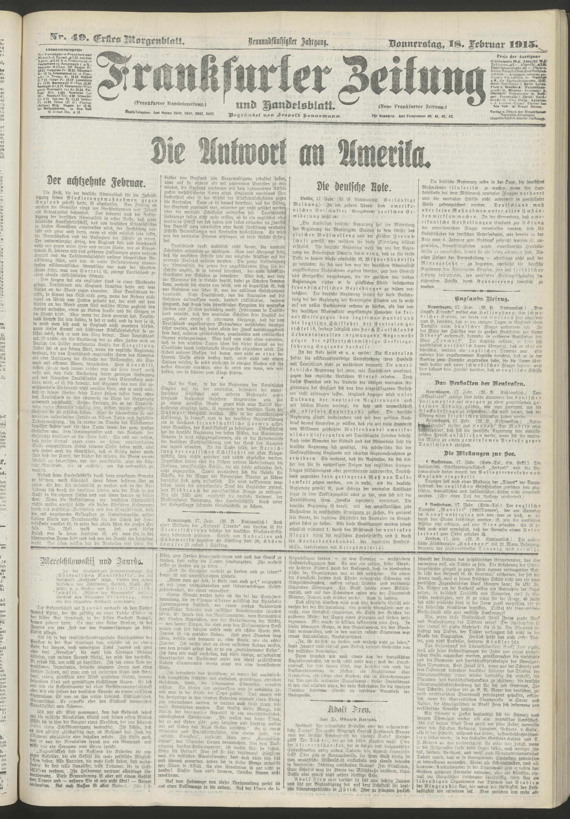 18.02.1915 = Nr. 49. Erstes Morgenblatt