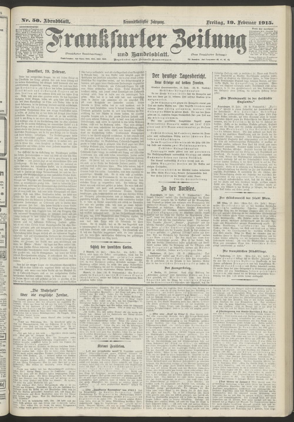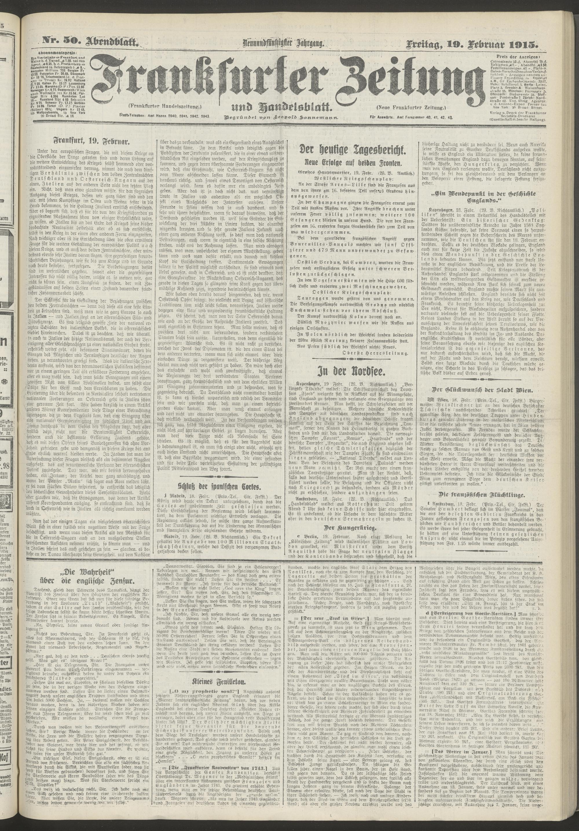 19.02.1915 = Nr. 50. Abendblatt