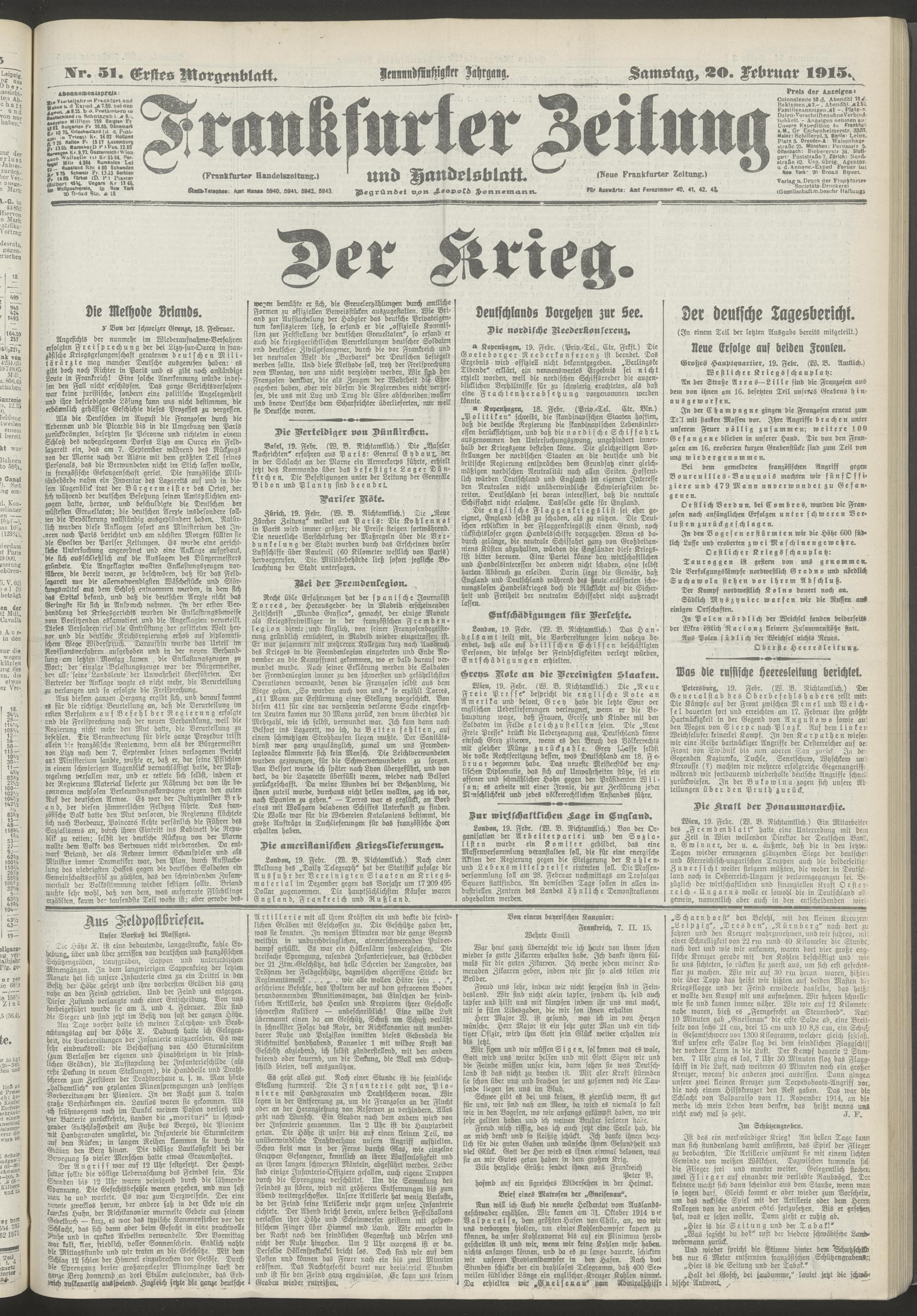 20.02.1915 = Nr. 51. Erstes Morgenblatt