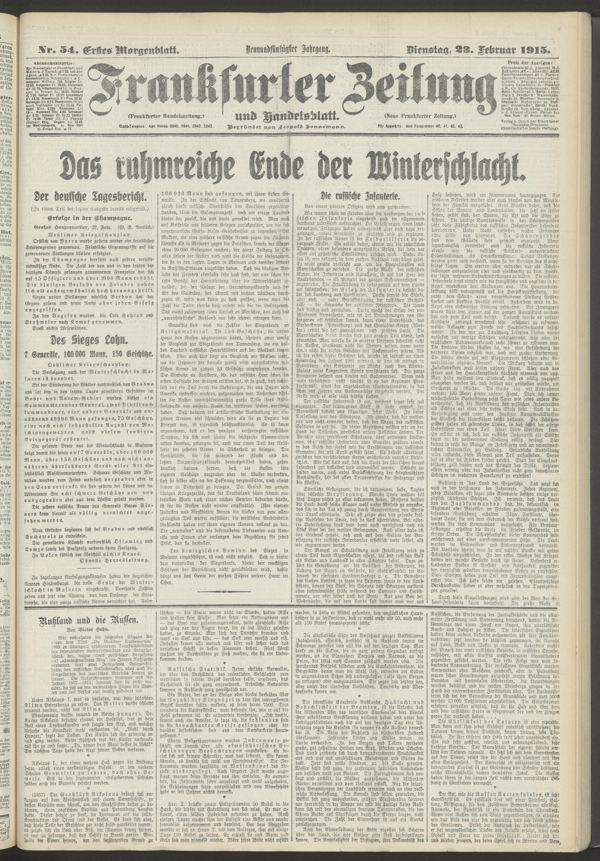 23.02.1915 = Nr. 54. Erstes Morgenblatt