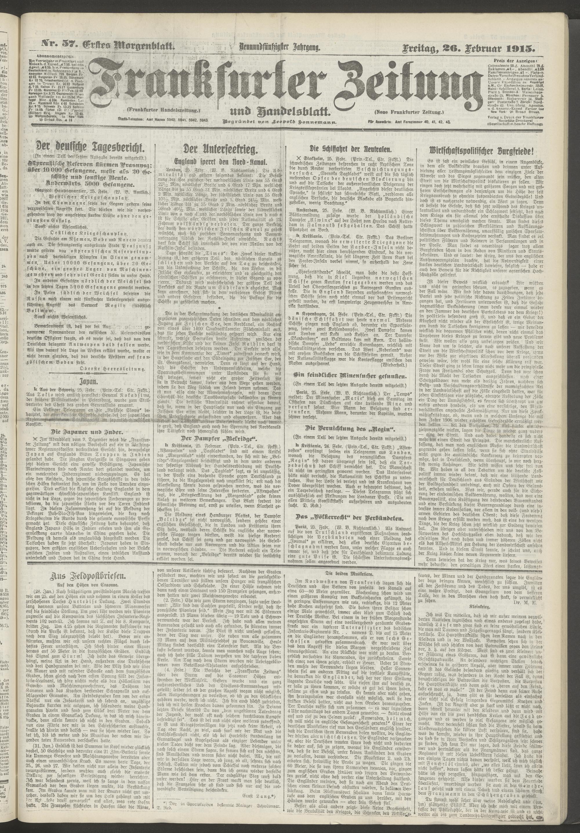 26.02.1915 = Nr. 57. Erstes Morgenblatt