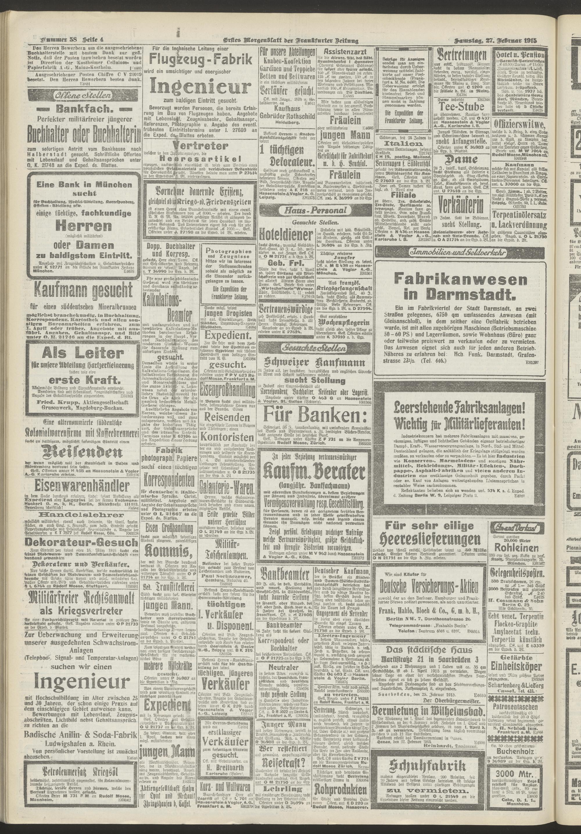 27.02.1915 = Nr. 58. Erstes Morgenblatt