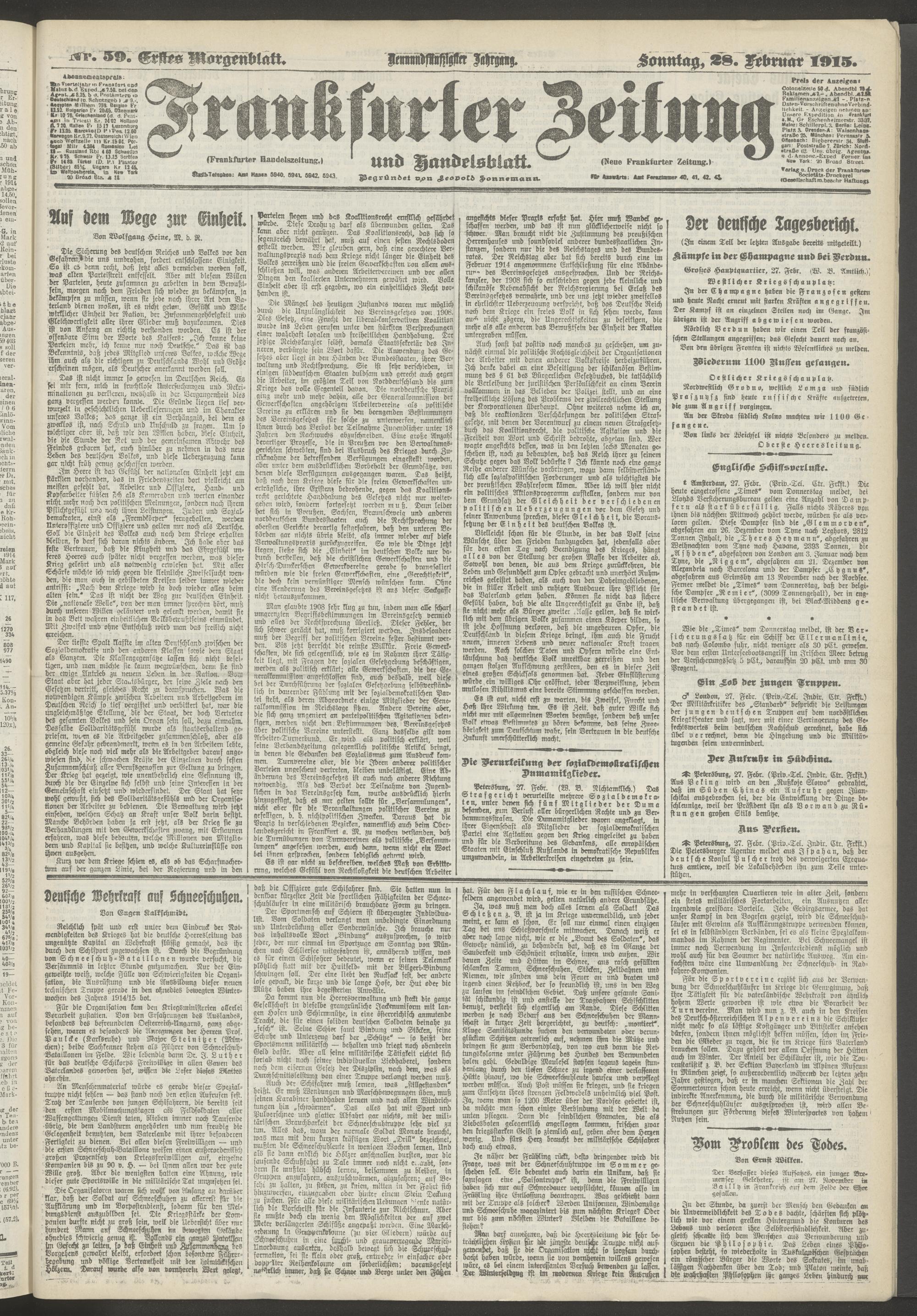 28.02.1915 = Nr. 59. Erstes Morgenblatt
