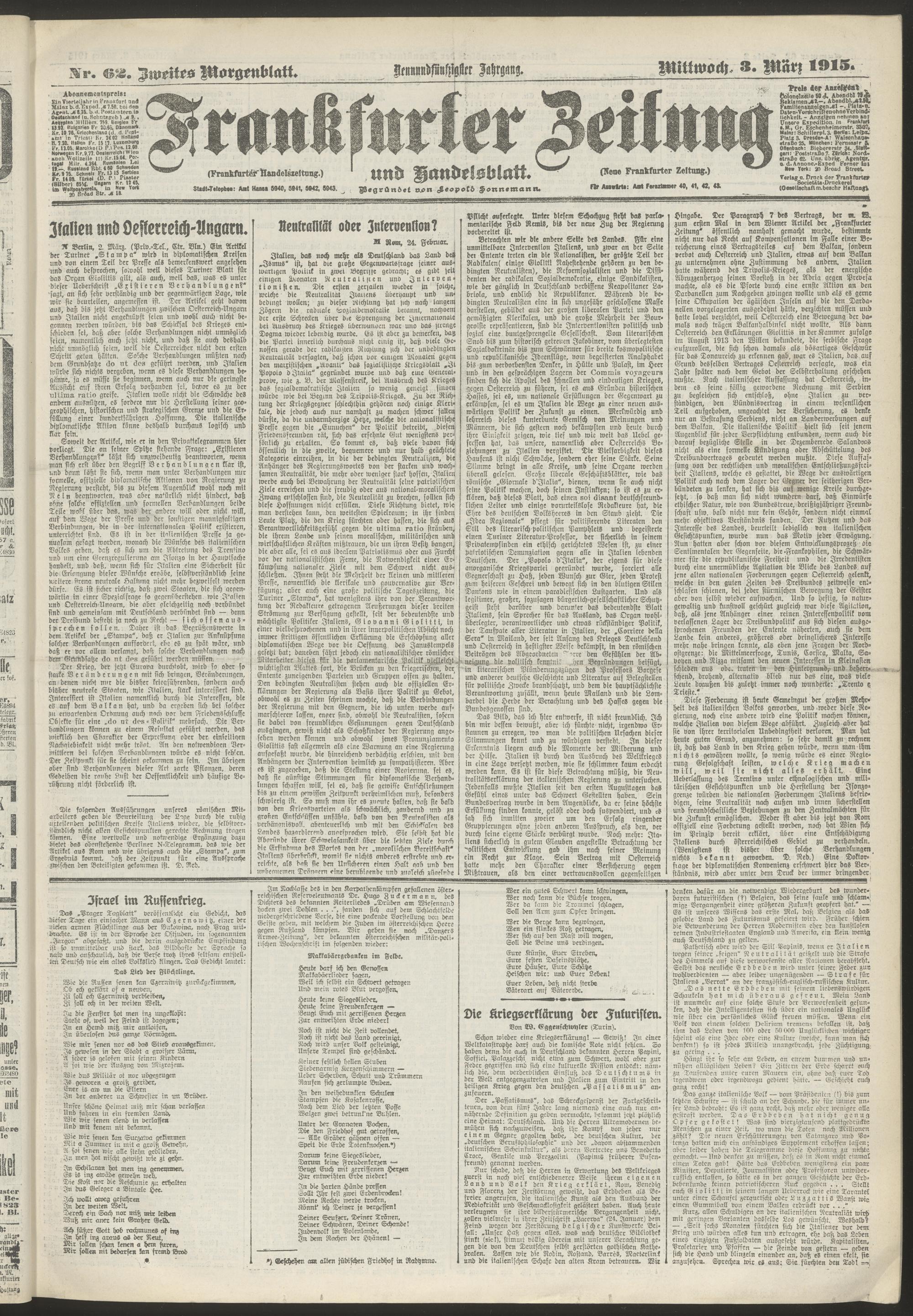 03.03.1915 = Nr. 62. Zweites Morgenblatt