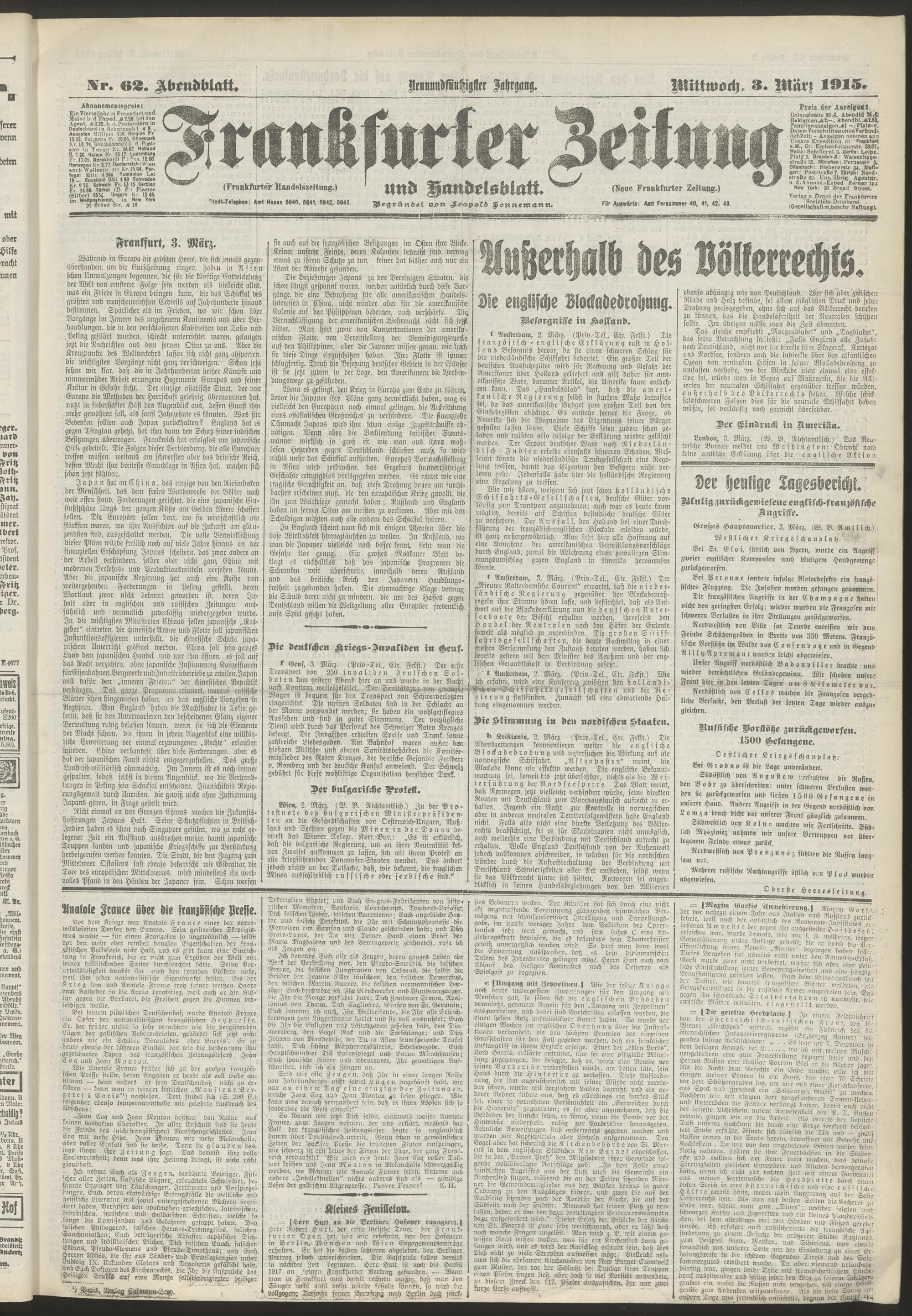 03.03.1915 = Nr. 62. Abendblatt