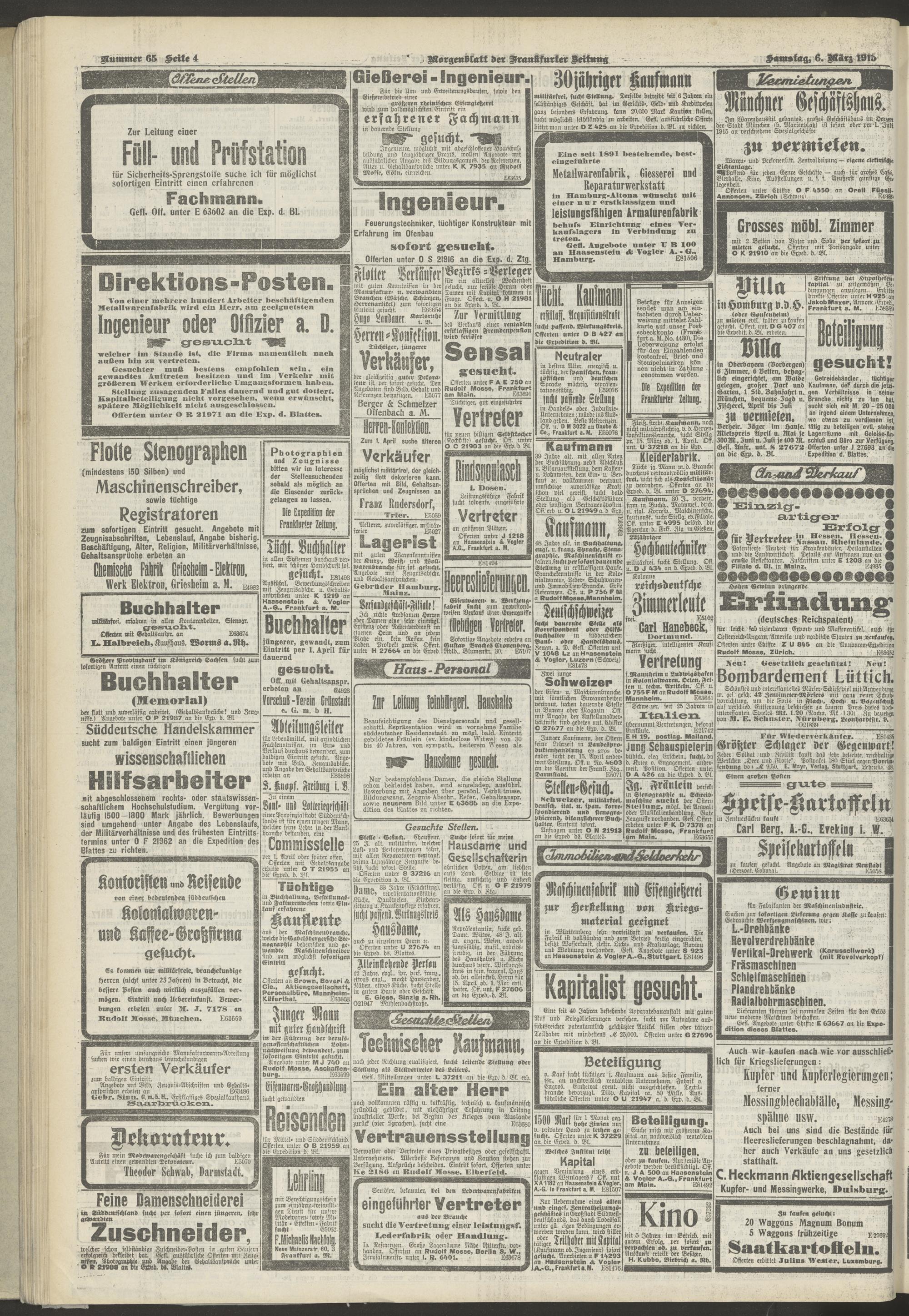 06.03.1915 = Nr. 65. Erstes Morgenblatt