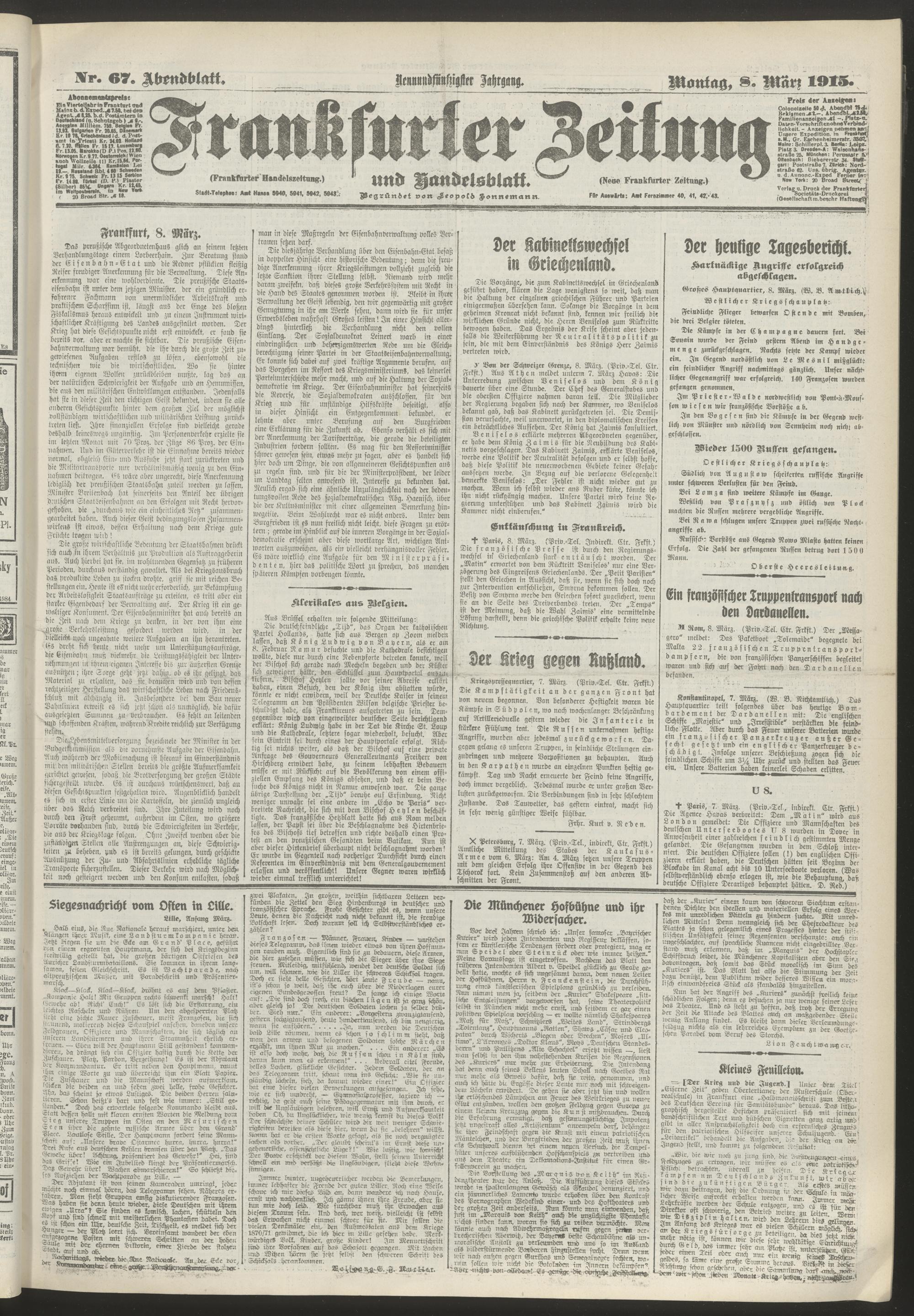 08.03.1915 = Nr. 67. Abendblatt