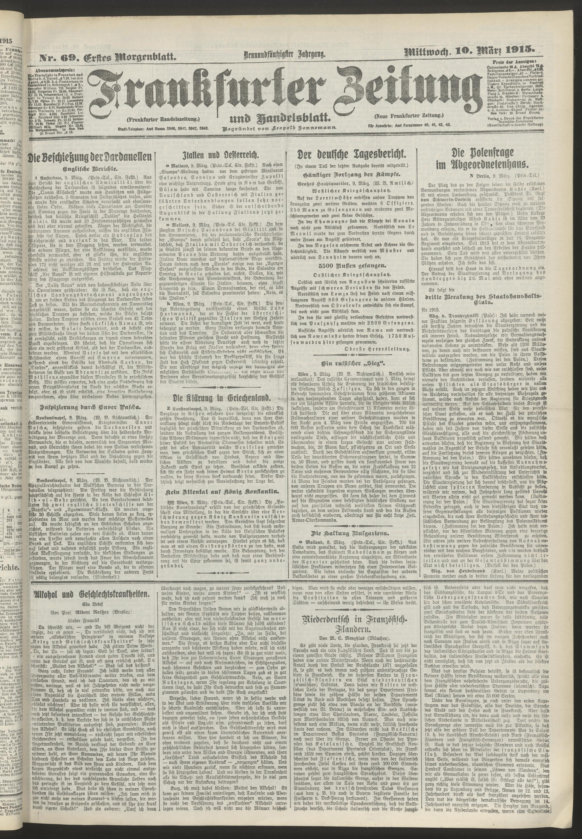 10.03.1915 = Nr. 69. Erstes Morgenblatt
