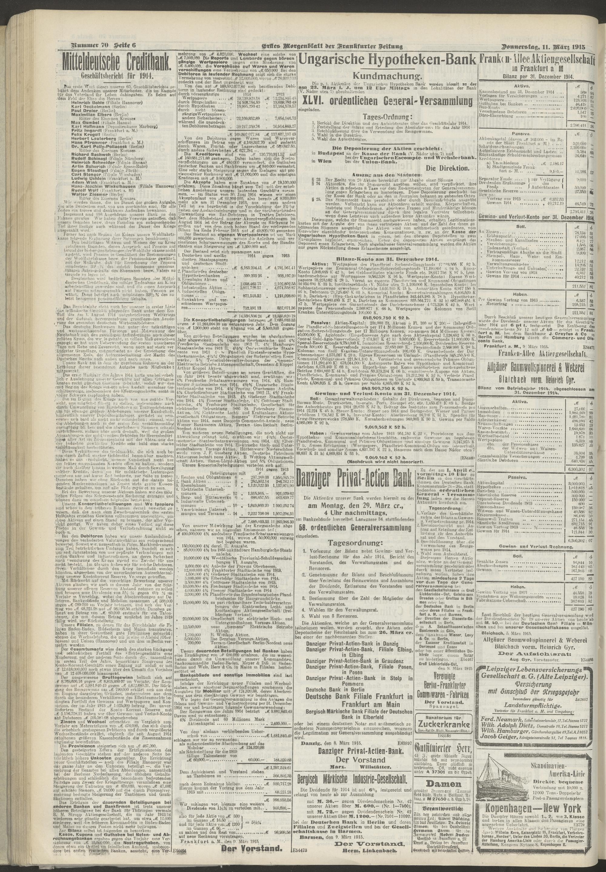 11.03.1915 = Nr. 70. Erstes Morgenblatt
