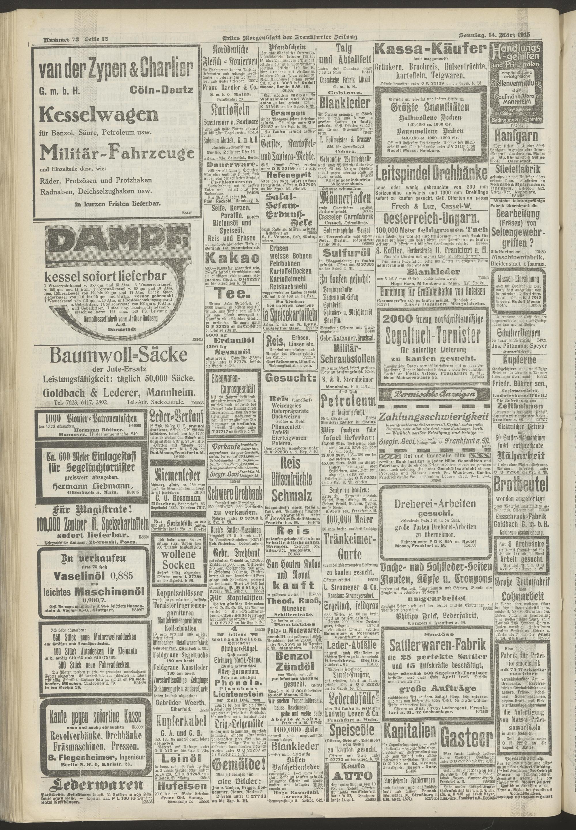 14.03.1915 = Nr. 73. Erstes Morgenblatt