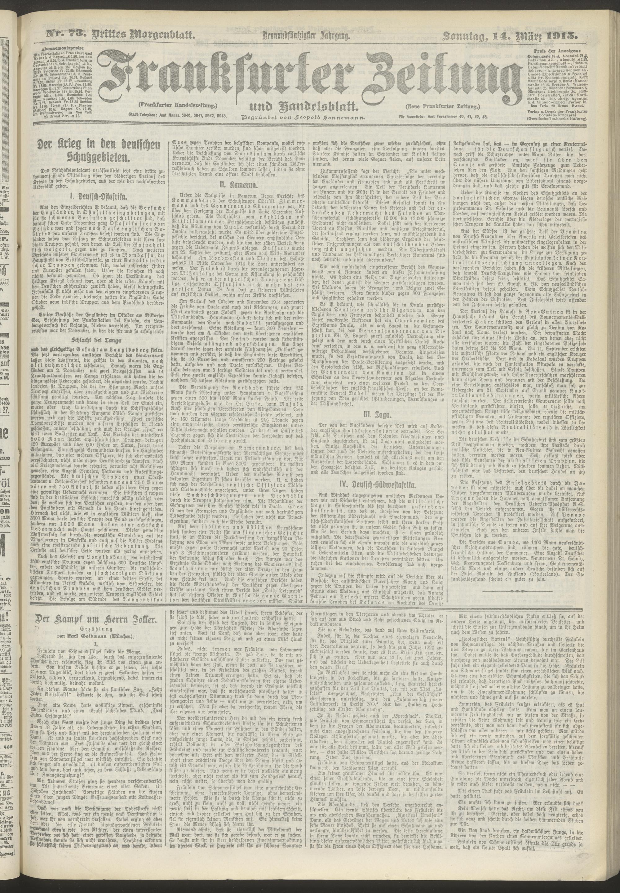 14.03.1915 = Nr. 73. Drittes Morgenblatt