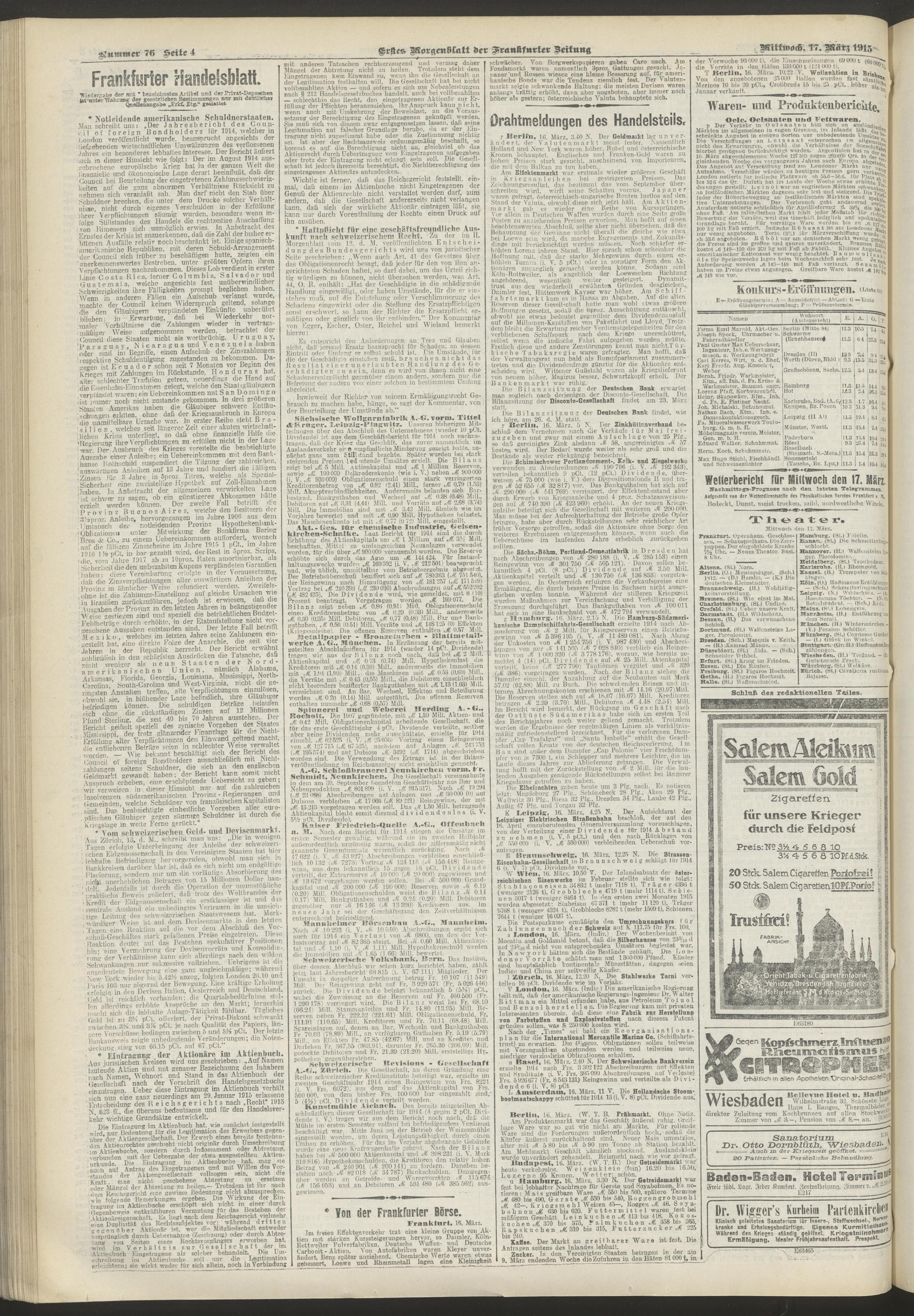 17.03.1915 = Nr. 76. Erstes Morgenblatt