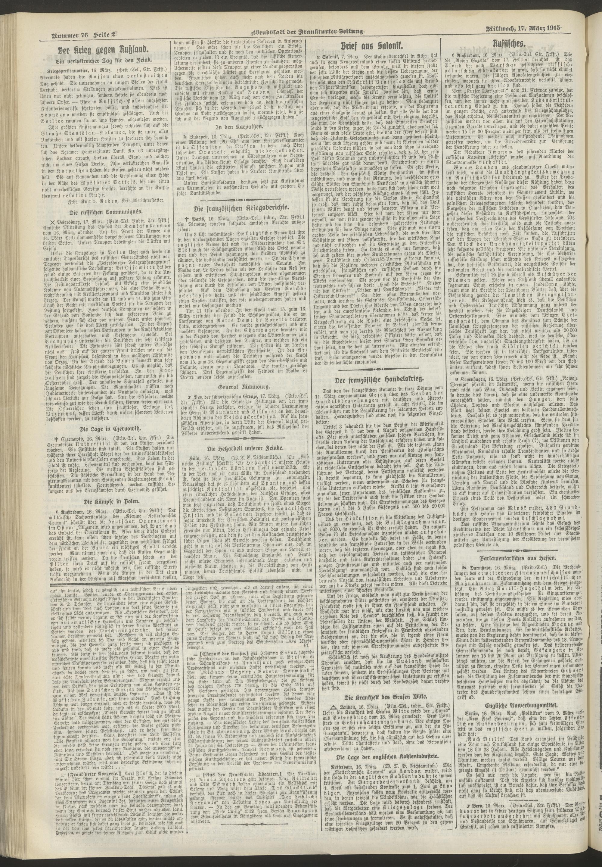 17.03.1915 = Nr. 76. Abendblatt
