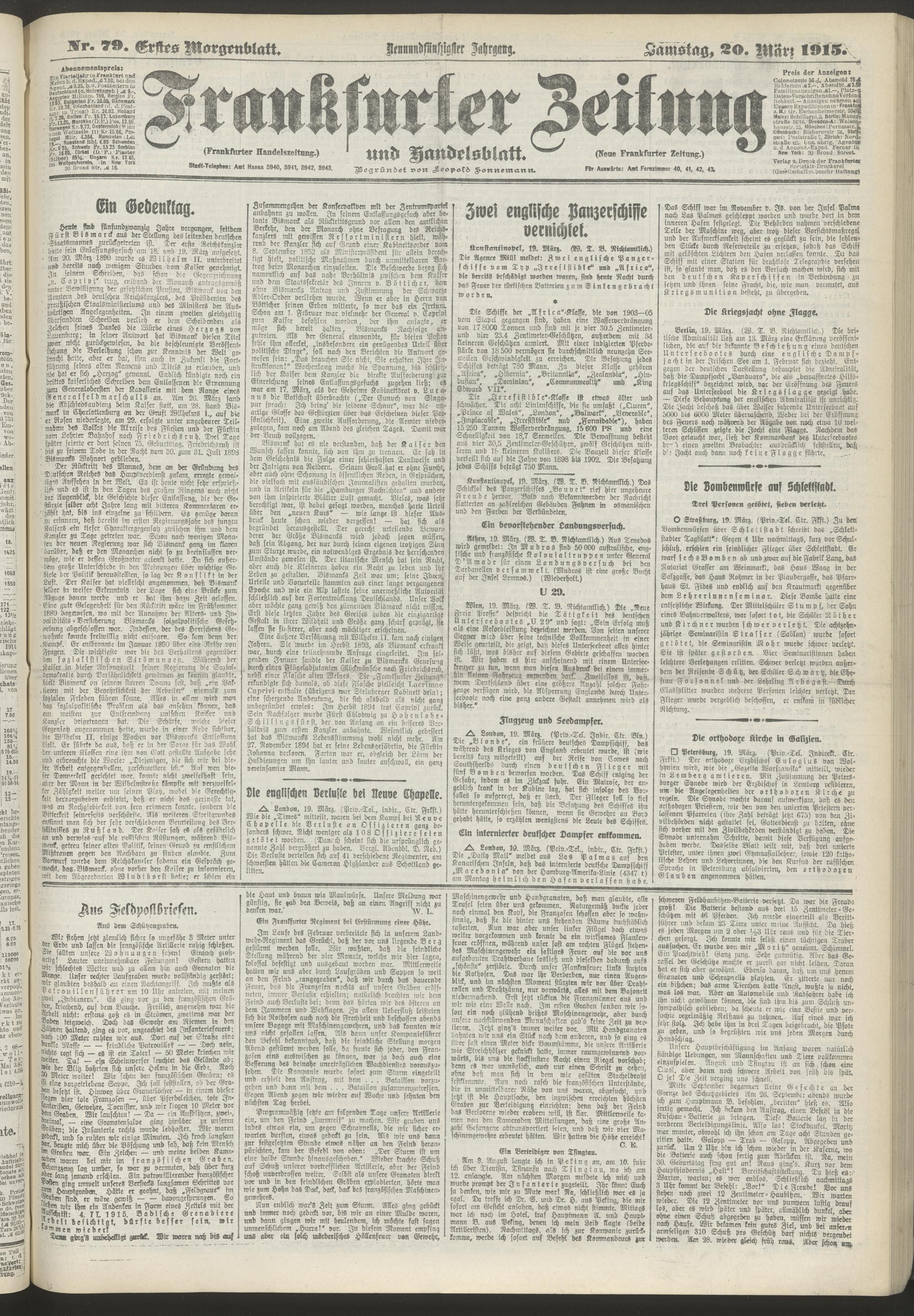 20.03.1915 = Nr. 79. Erstes Morgenblatt