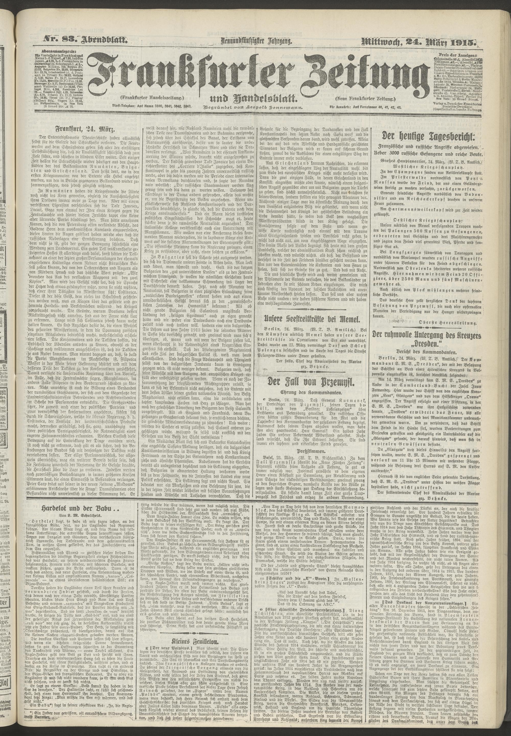 24.03.1915 = Nr. 83. Abendblatt