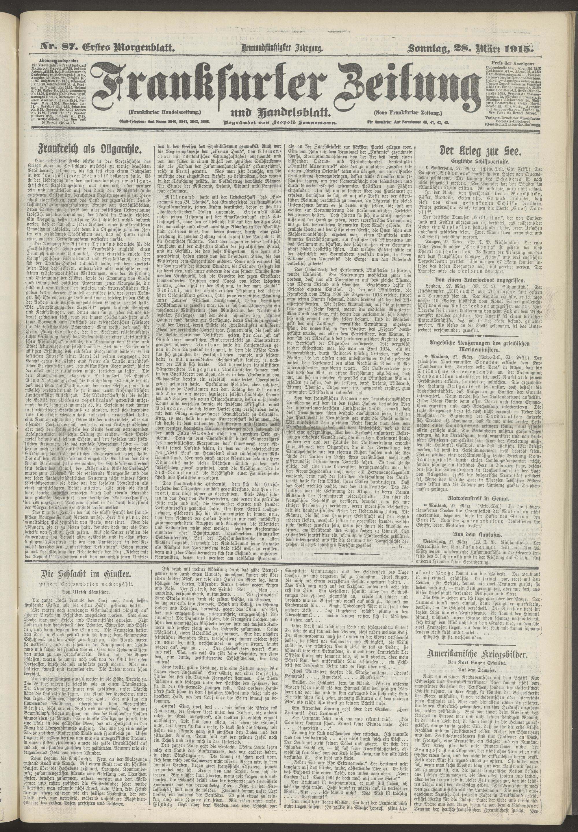 28.03.1915 = Nr. 87. Erstes Morgenblatt