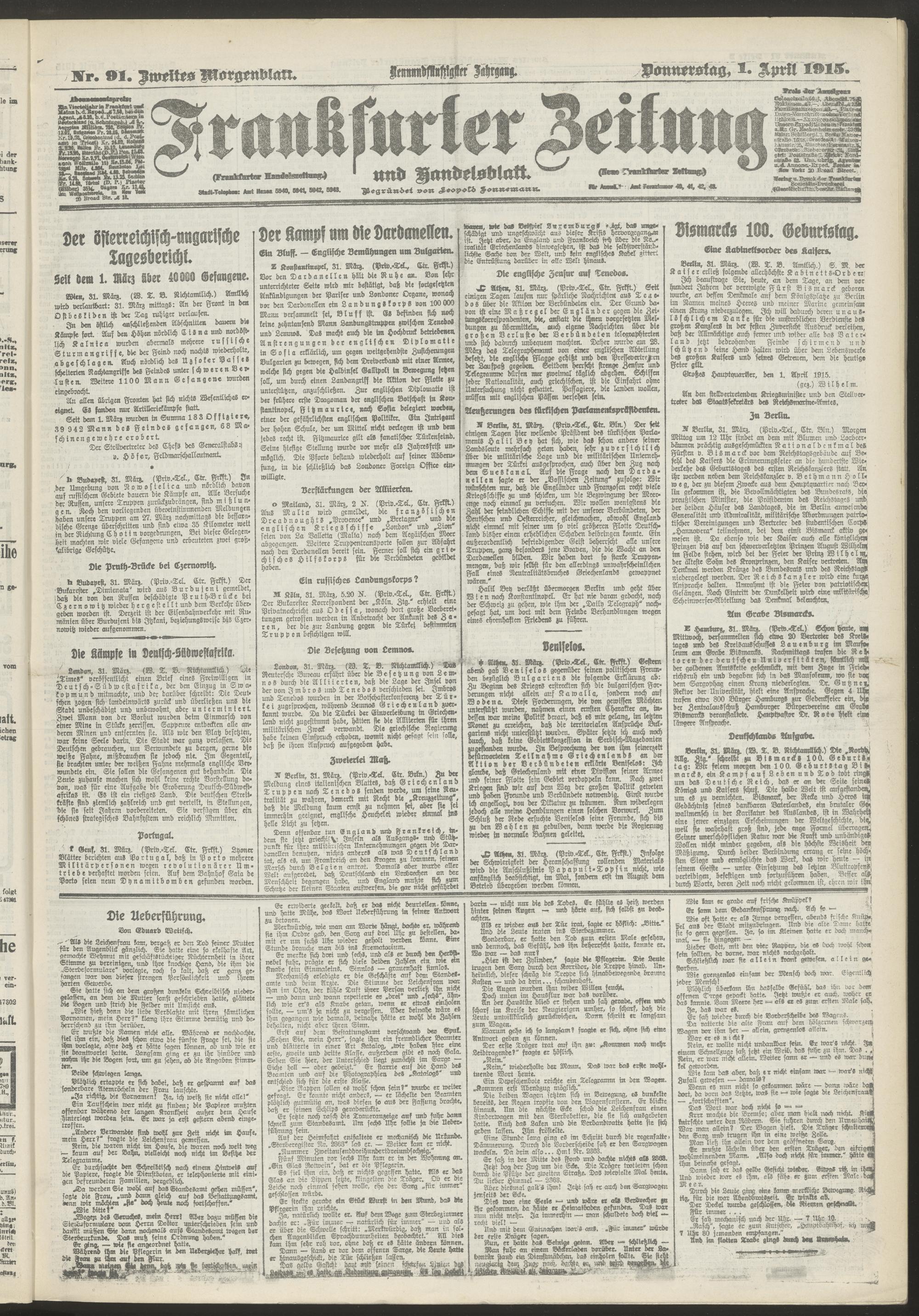 01.04.1915 = Nr. 91. Zweites Morgenblatt