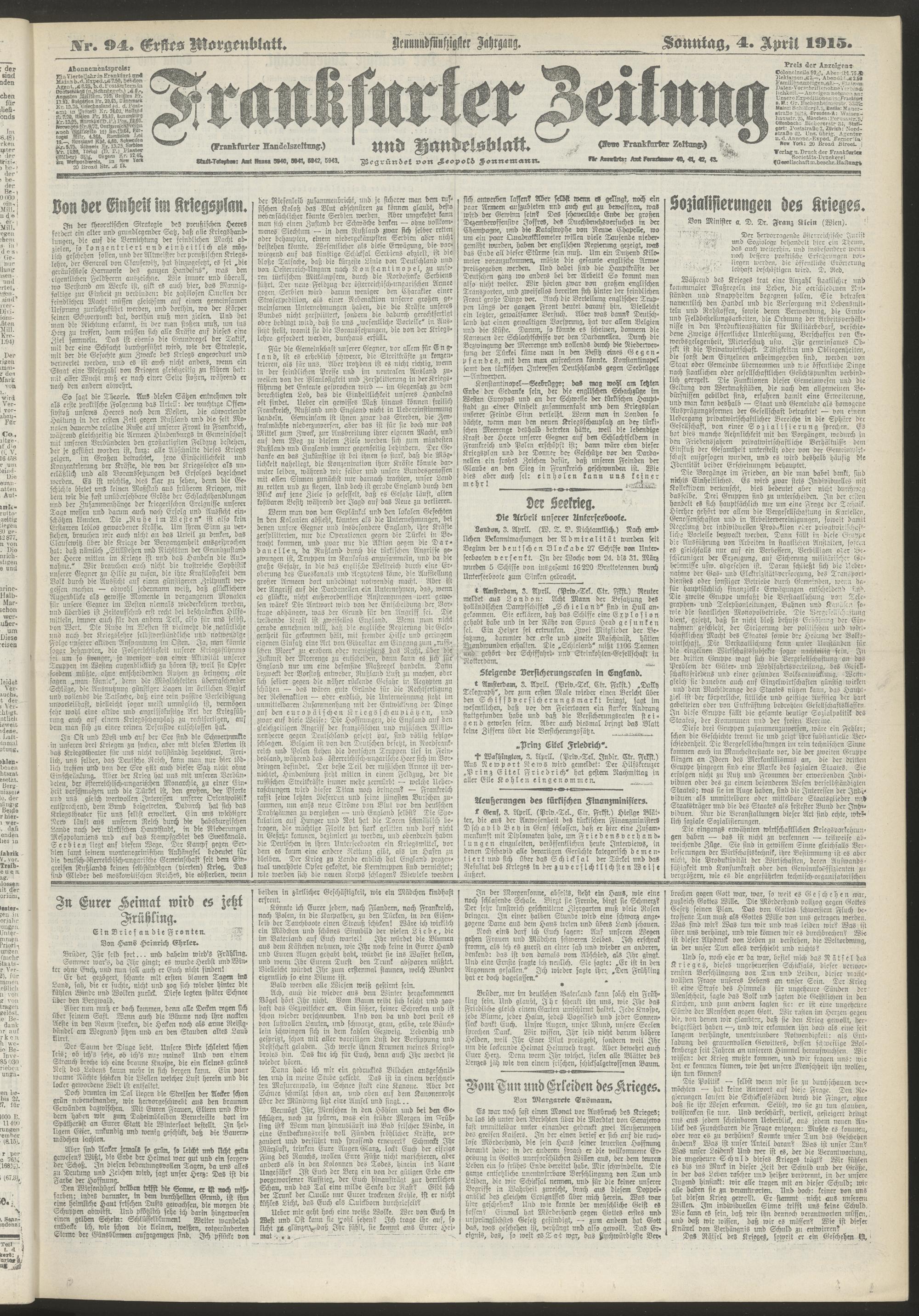 04.04.1915 = Nr. 94. Erstes Morgenblatt