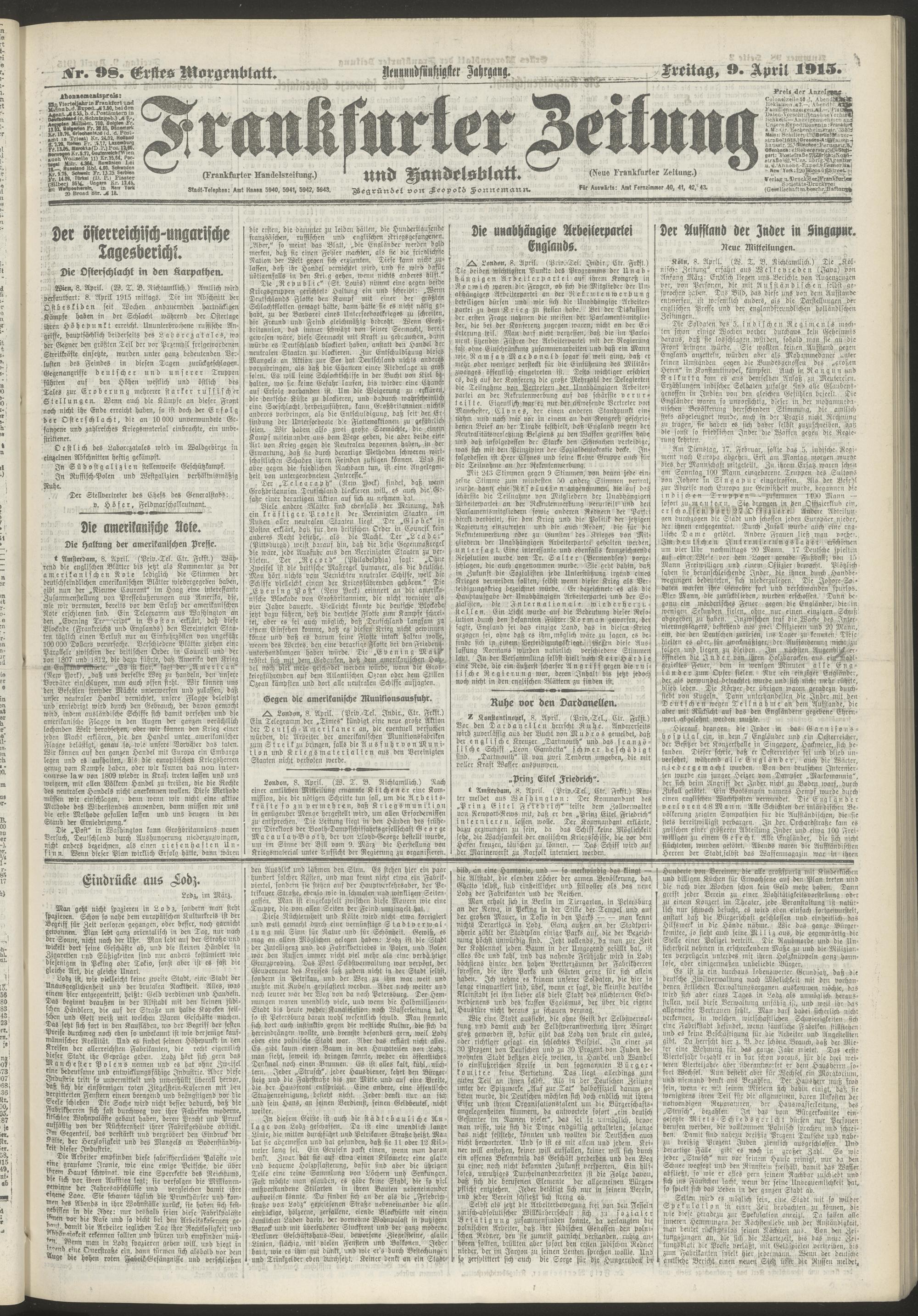 09.04.1915 = Nr. 98. Erstes Morgenblatt