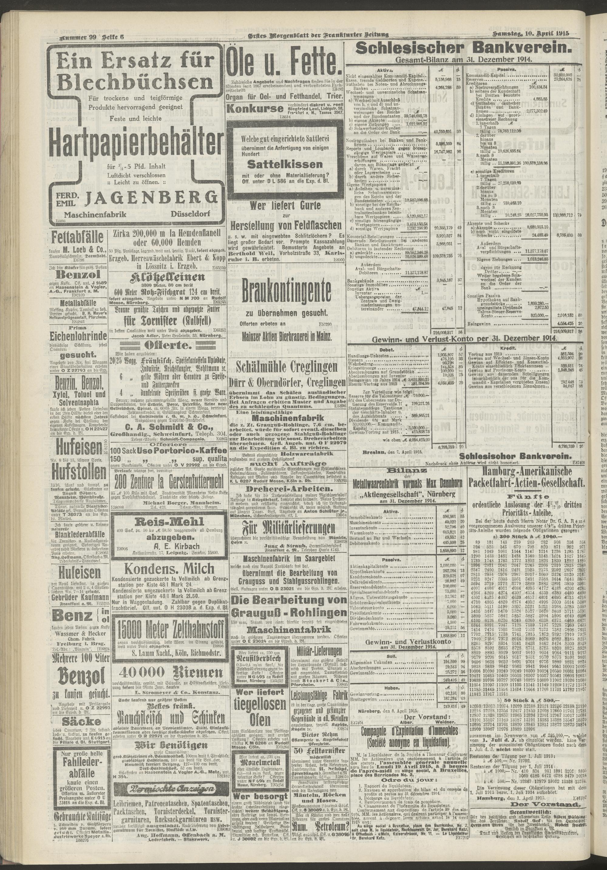 10.04.1915 = Nr. 99. Erstes Morgenblatt