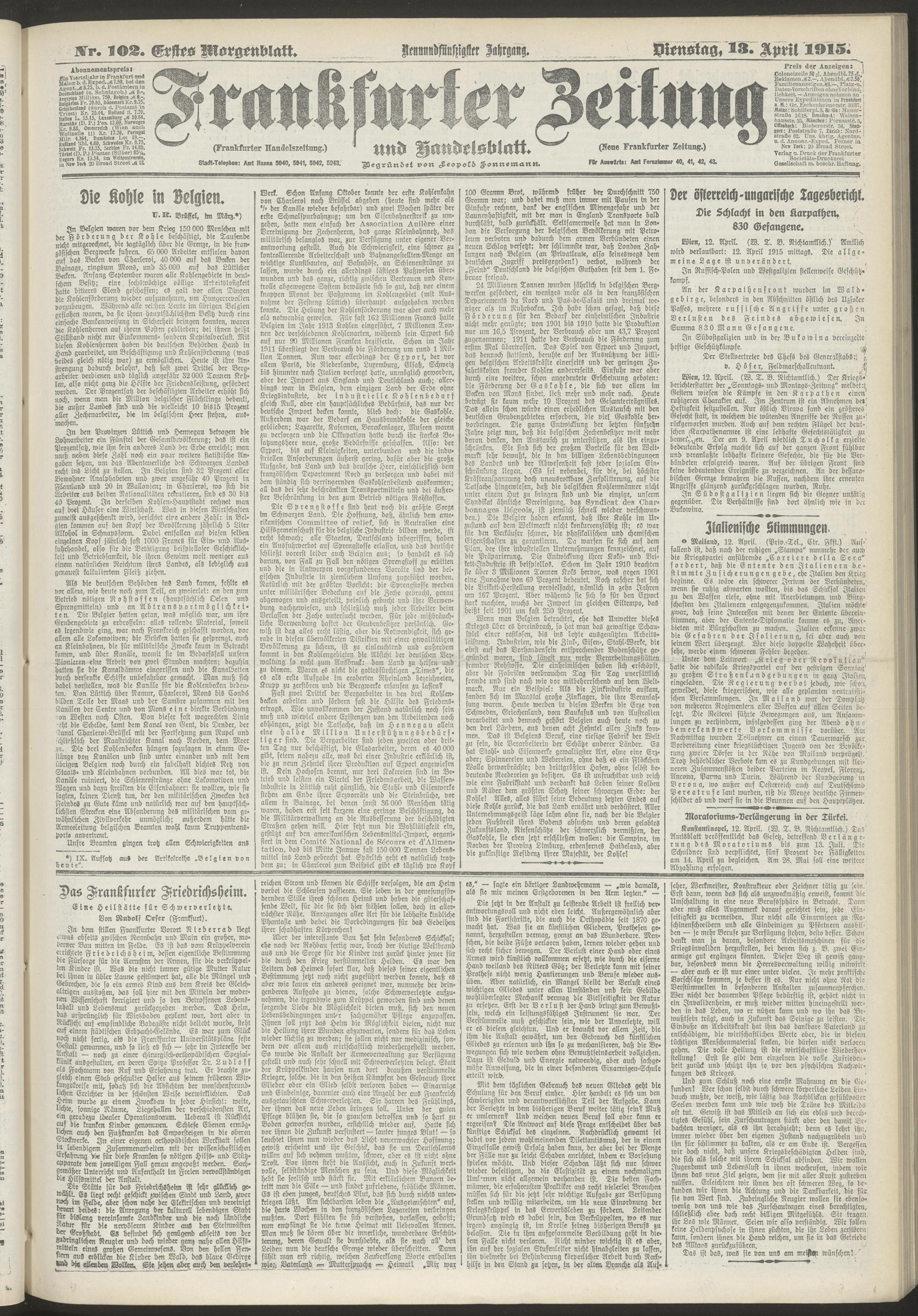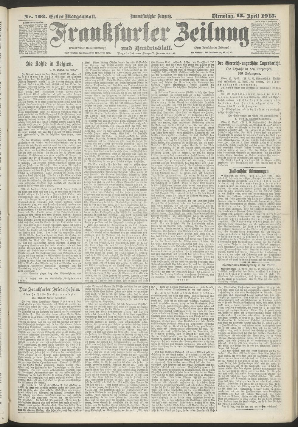 13.04.1915 = Nr. 102. Erstes Morgenblatt