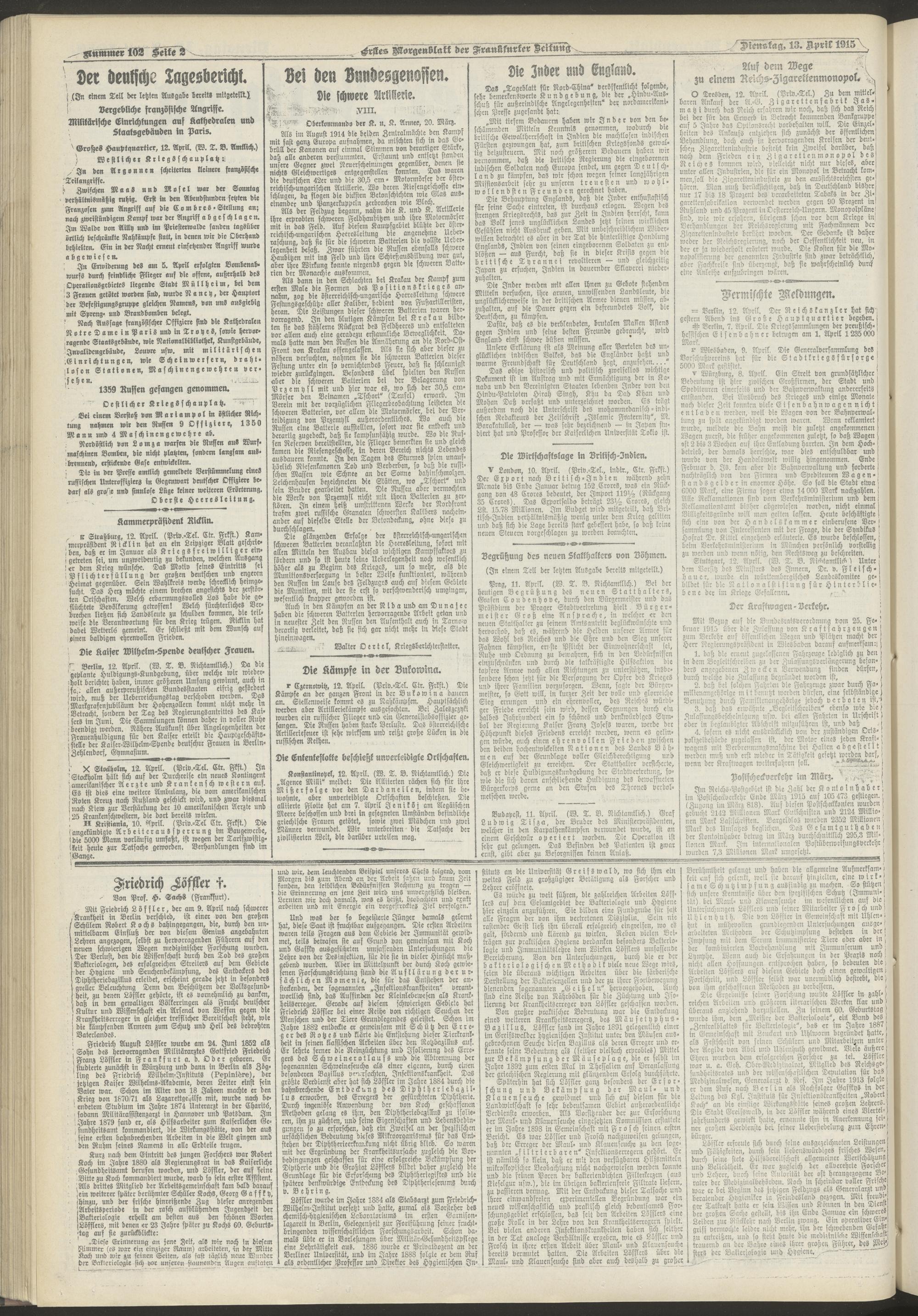 13.04.1915 = Nr. 102. Erstes Morgenblatt