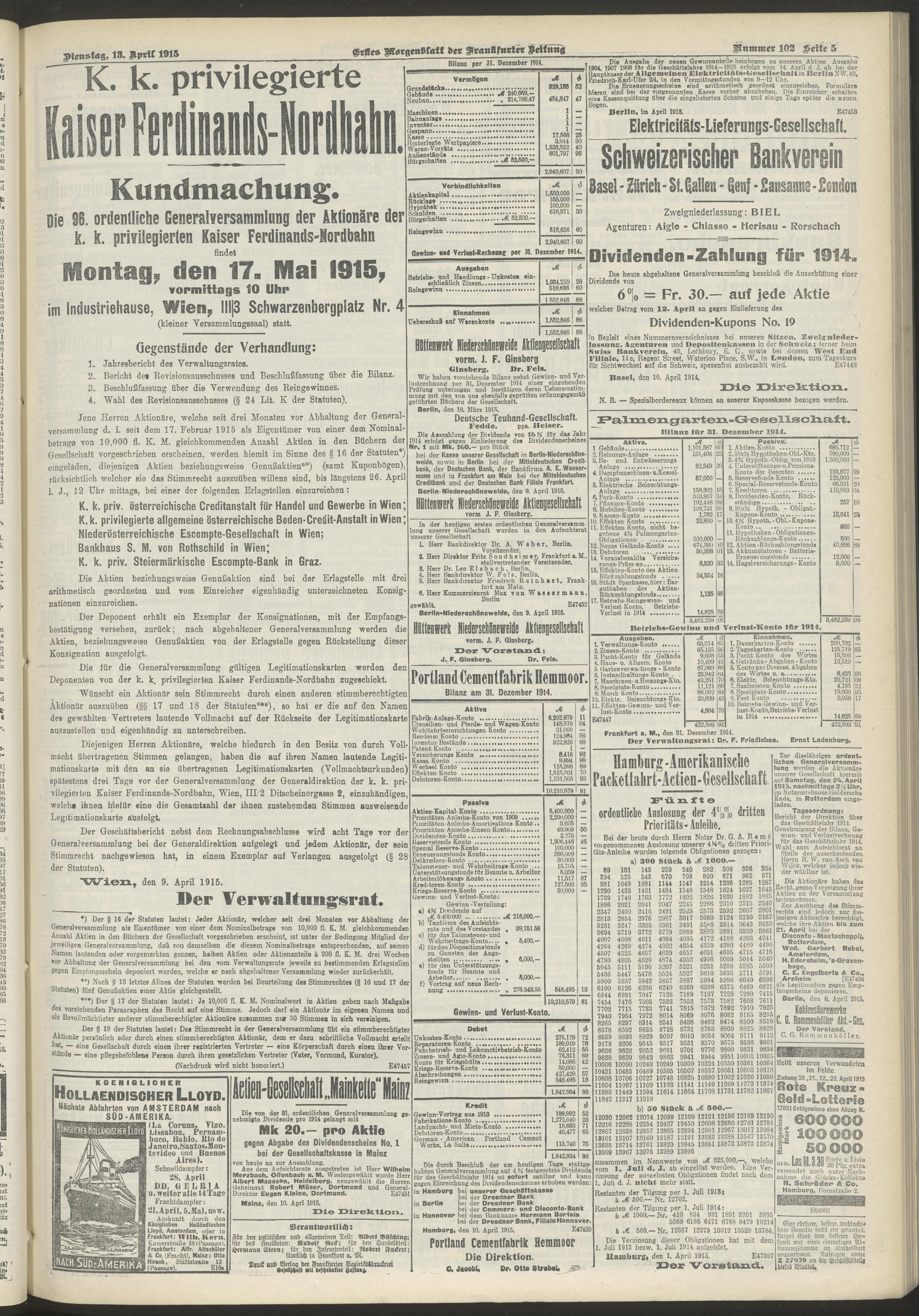 13.04.1915 = Nr. 102. Erstes Morgenblatt