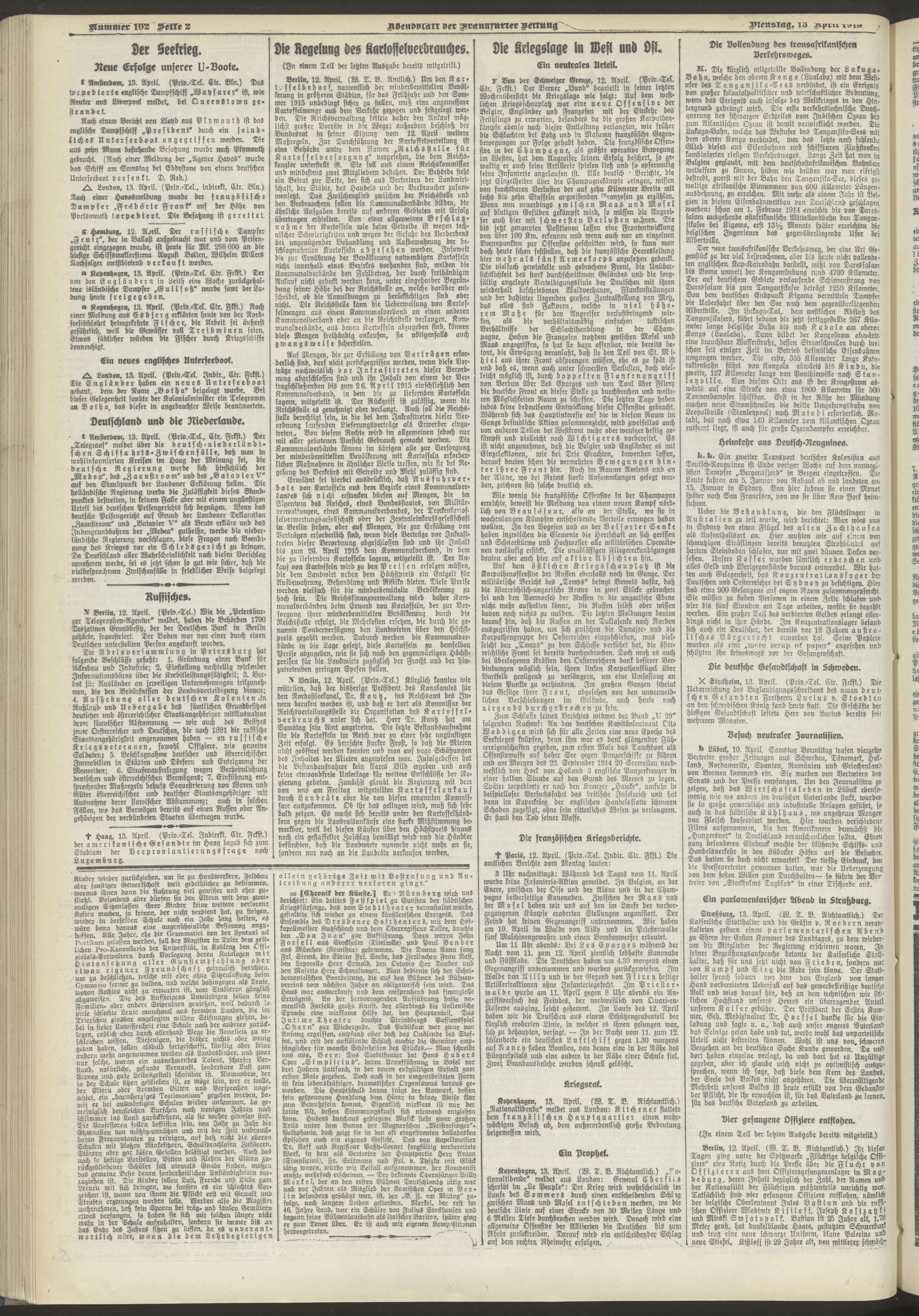 13.04.1915 = Nr. 102. Abendblatt