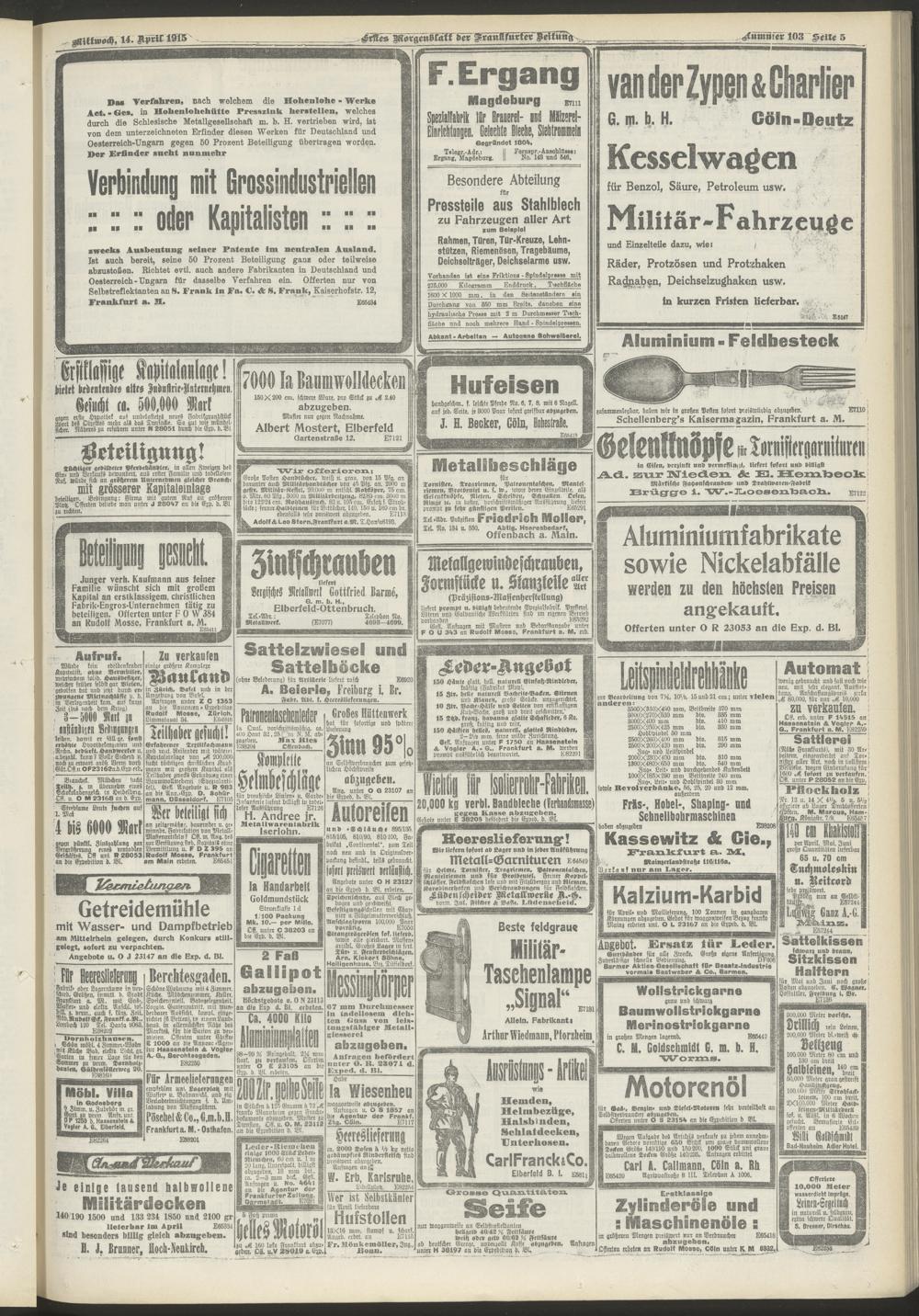 14.04.1915 = Nr. 103. Erstes Morgenblatt