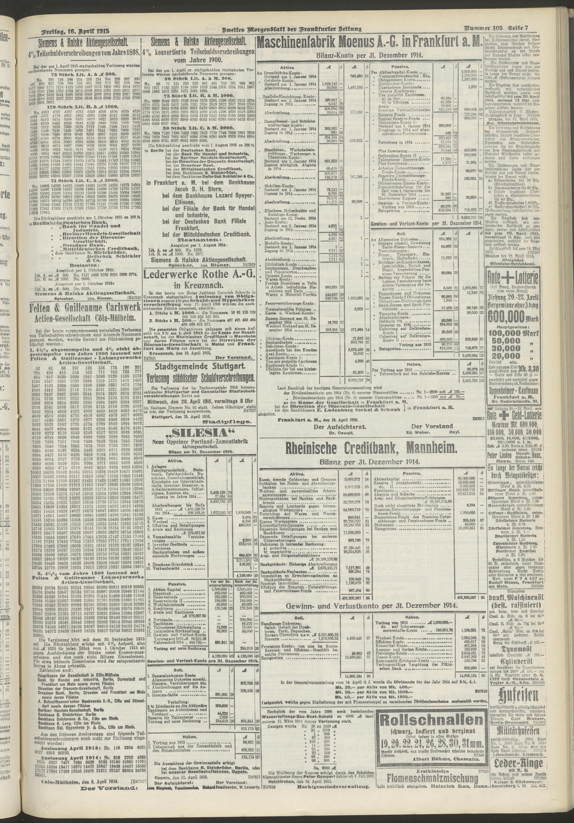 16.04.1915 = Nr. 105. Zweites Morgenblatt