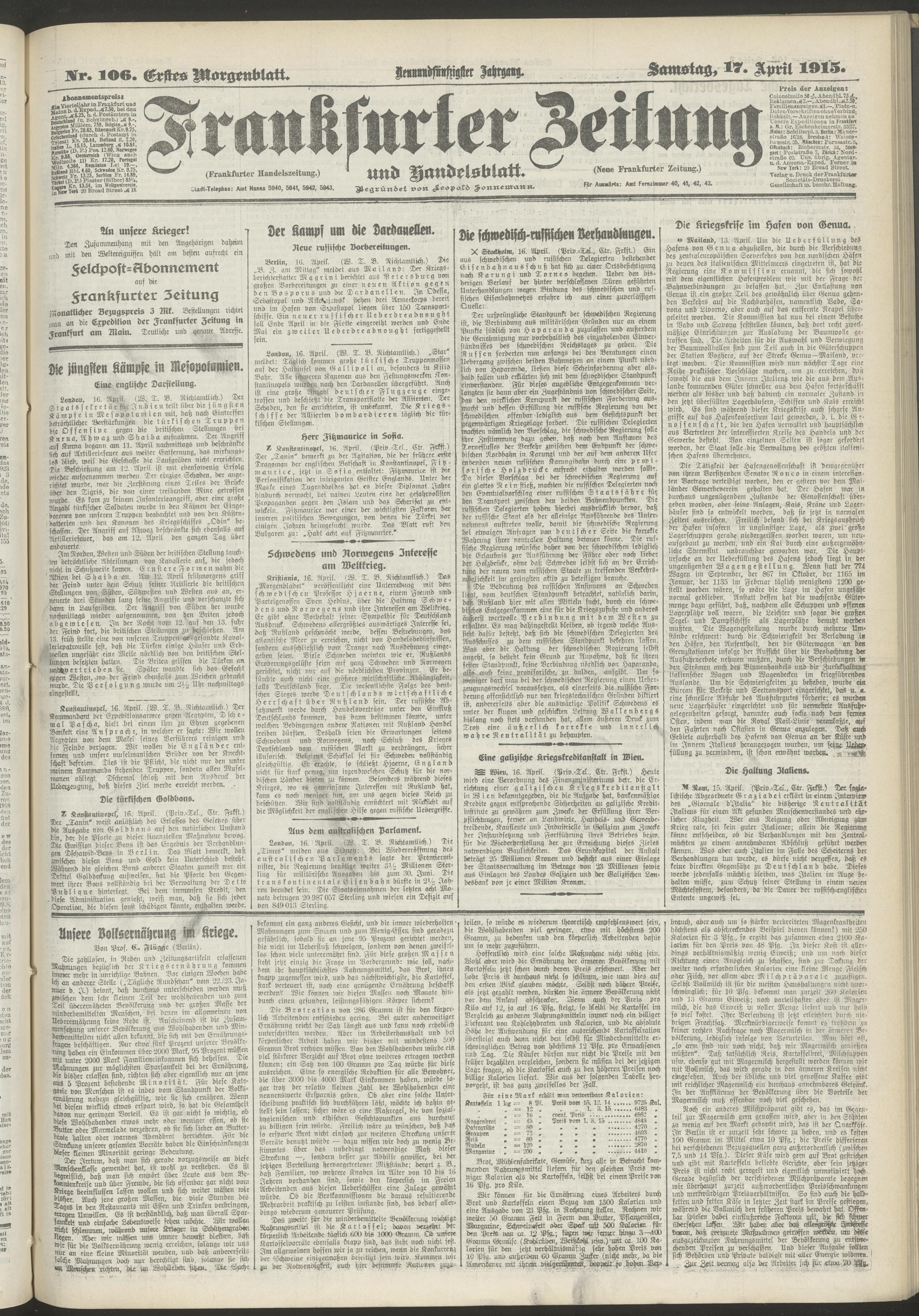 17.04.1915 = Nr. 106. Erstes Morgenblatt