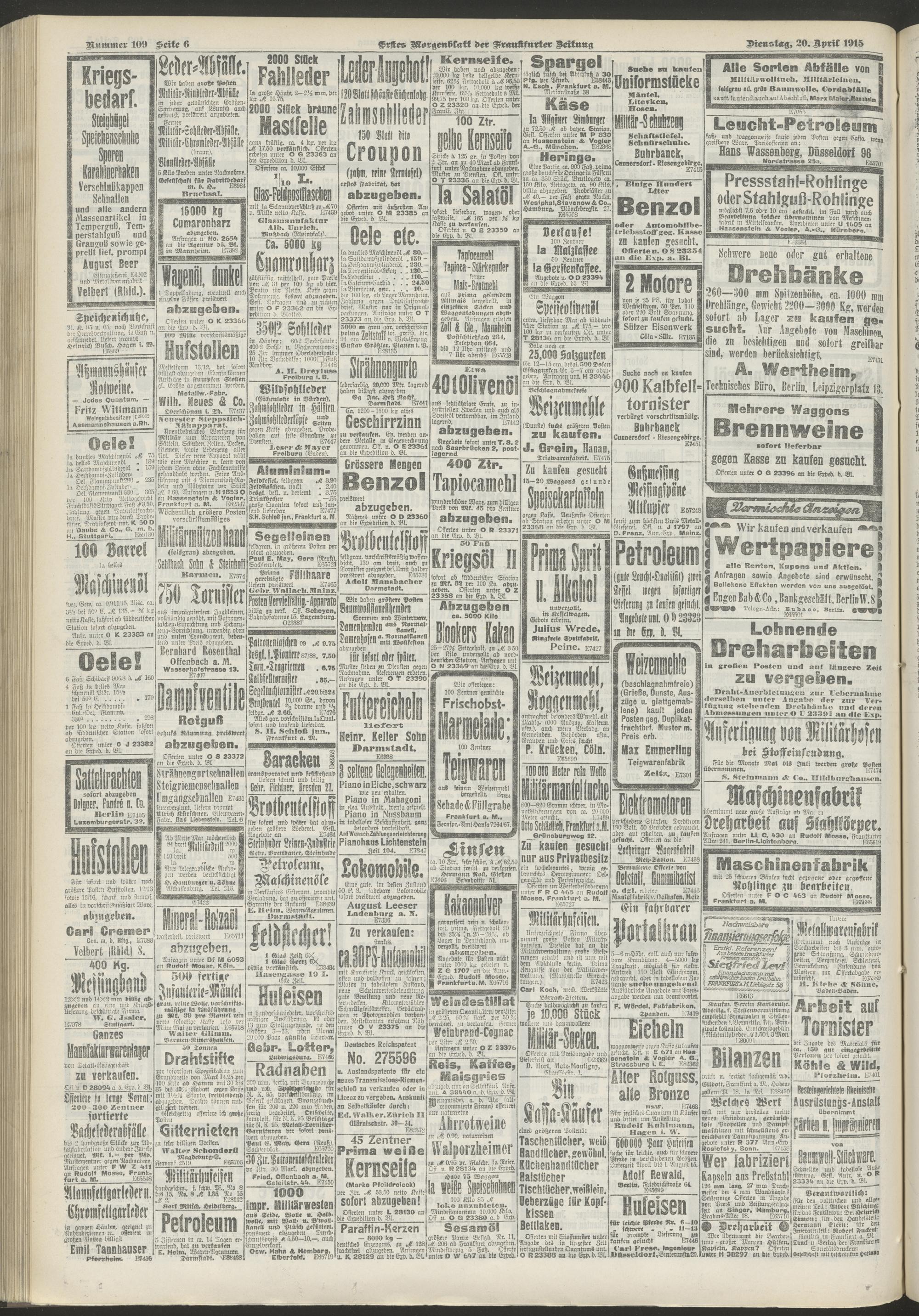 20.04.1915 = Nr. 109. Erstes Morgenblatt