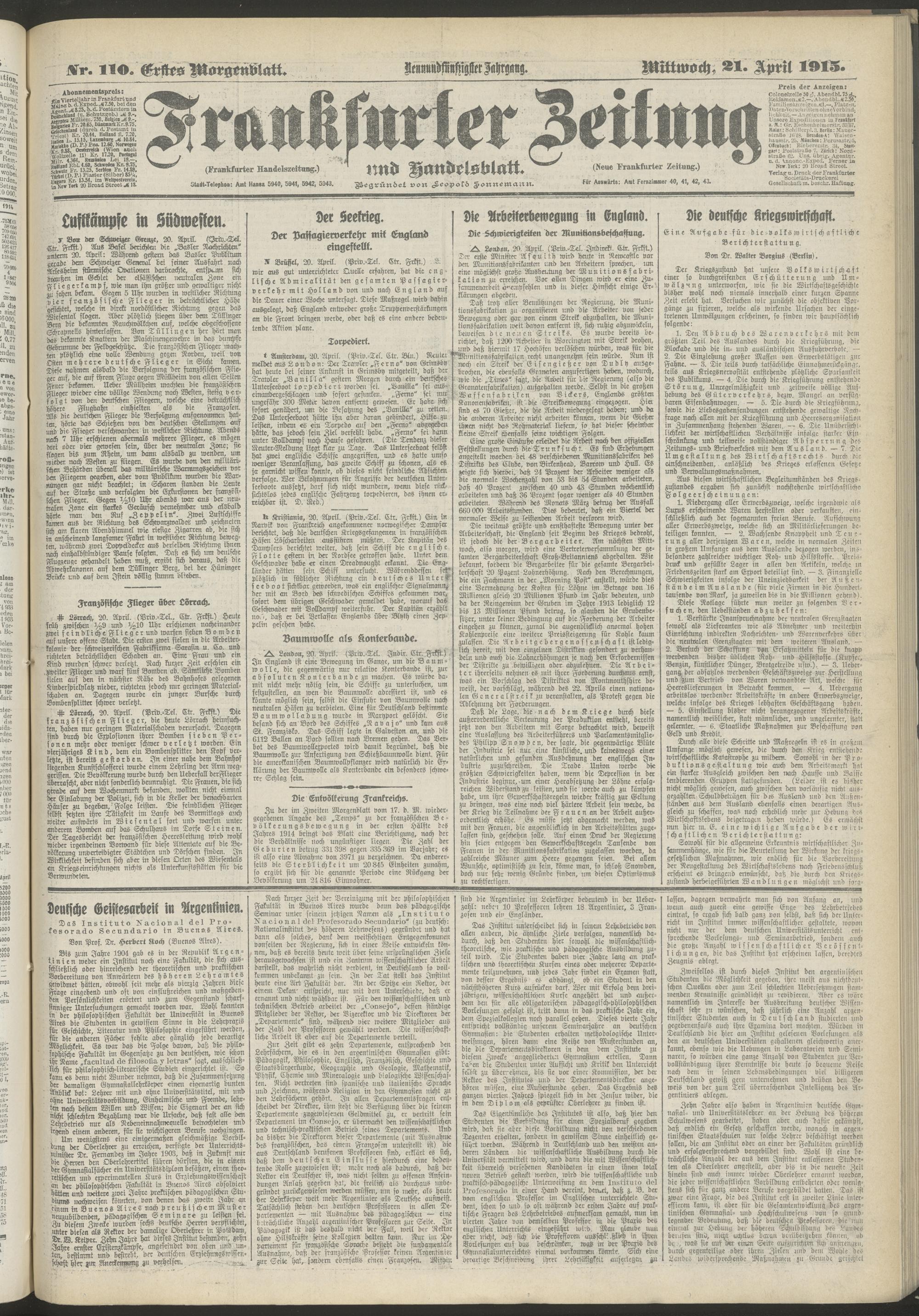 21.04.1915 = Nr. 110. Erstes Morgenblatt