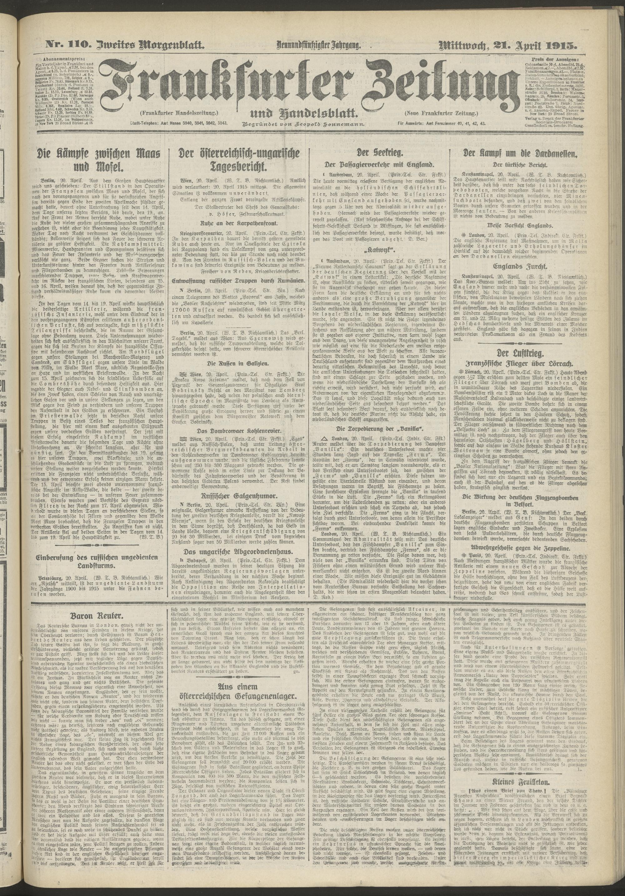 21.04.1915 = Nr. 110. Zweites Morgenblatt